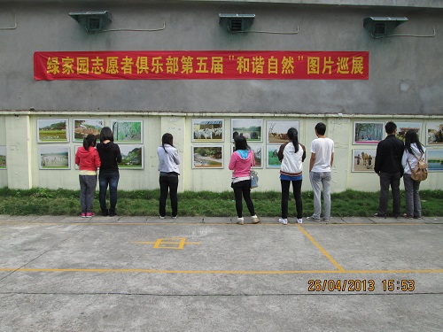 2013年4月26日,交通經(jīng)濟(jì)系團(tuán)總支與福建省綠家園志愿者俱樂(lè)部共同舉辦了福建省綠家園志愿者俱樂(lè)部第五屆“和諧自然”圖片巡展--省交通學(xué)院站。