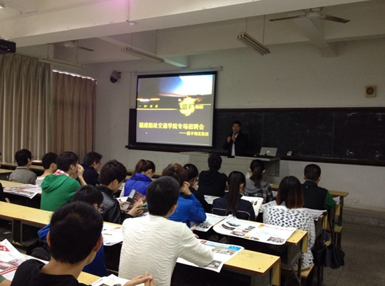 2014年4月23日在福建船政交通職業(yè)學(xué)院經(jīng)管大樓307教室為2014屆畢業(yè)生舉辦一場(chǎng)專場(chǎng)招聘會(huì),由盛豐物流股份有限公司前來(lái)對(duì)交通經(jīng)濟(jì)系2014屆各專業(yè)應(yīng)屆畢業(yè)生進(jìn)行招聘。