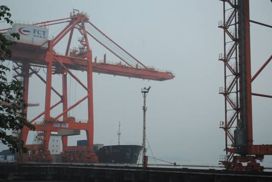 我們學(xué)習(xí)的第一站是碼頭作業(yè)現(xiàn)場(chǎng)。莊科長(zhǎng)為學(xué)生詳細(xì)介紹了碼頭操作流程及碼頭作業(yè)機(jī)械設(shè)備。使我們更直觀的了