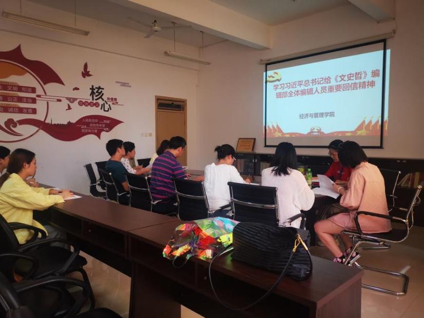 為了深刻領(lǐng)會學(xué)習(xí)習(xí)近平總書記重要回話精神,將教育的重要論述與黨史學(xué)習(xí)教育結(jié)合起來,推進(jìn)理論創(chuàng)新,培養(yǎng)我院師生銳意進(jìn)取的處事態(tài)度。經(jīng)濟與管理學(xué)院組織全體師生于6月10日展開深入學(xué)習(xí)貫徹習(xí)近平總書記給《文史哲》編輯部全體人員重要回信精神。