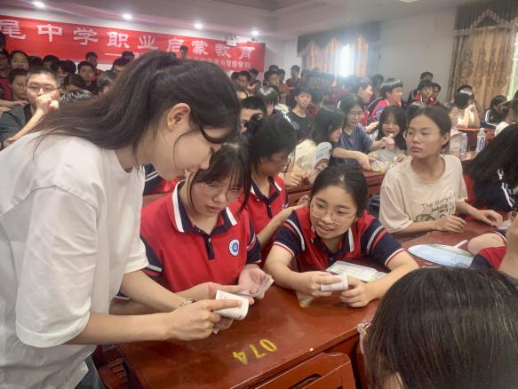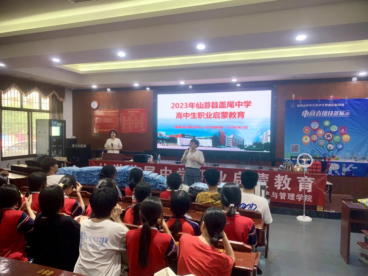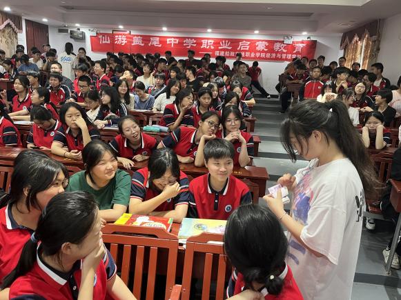 為深入學(xué)習(xí)貫徹黨的二十大精神和習(xí)近平總書(shū)記關(guān)于職業(yè)教育的重要指示批示精神,貫徹落實(shí)《國(guó)家職業(yè)教育改革實(shí)施方案》《中華人民共和國(guó)職業(yè)教育法》,培養(yǎng)中學(xué)生職業(yè)認(rèn)知和職業(yè)生涯規(guī)劃意識(shí),拓展中學(xué)生職業(yè)技能體驗(yàn)的途徑,提高職業(yè)教育的社會(huì)認(rèn)可度,樹(shù)立職業(yè)教育“有學(xué)頭、有盼頭、有奔頭”新形象。近日,我校經(jīng)濟(jì)與管理學(xué)院赴仙游縣蓋尾中學(xué),為高一年級(jí)學(xué)生帶來(lái)職業(yè)啟蒙教育課程。