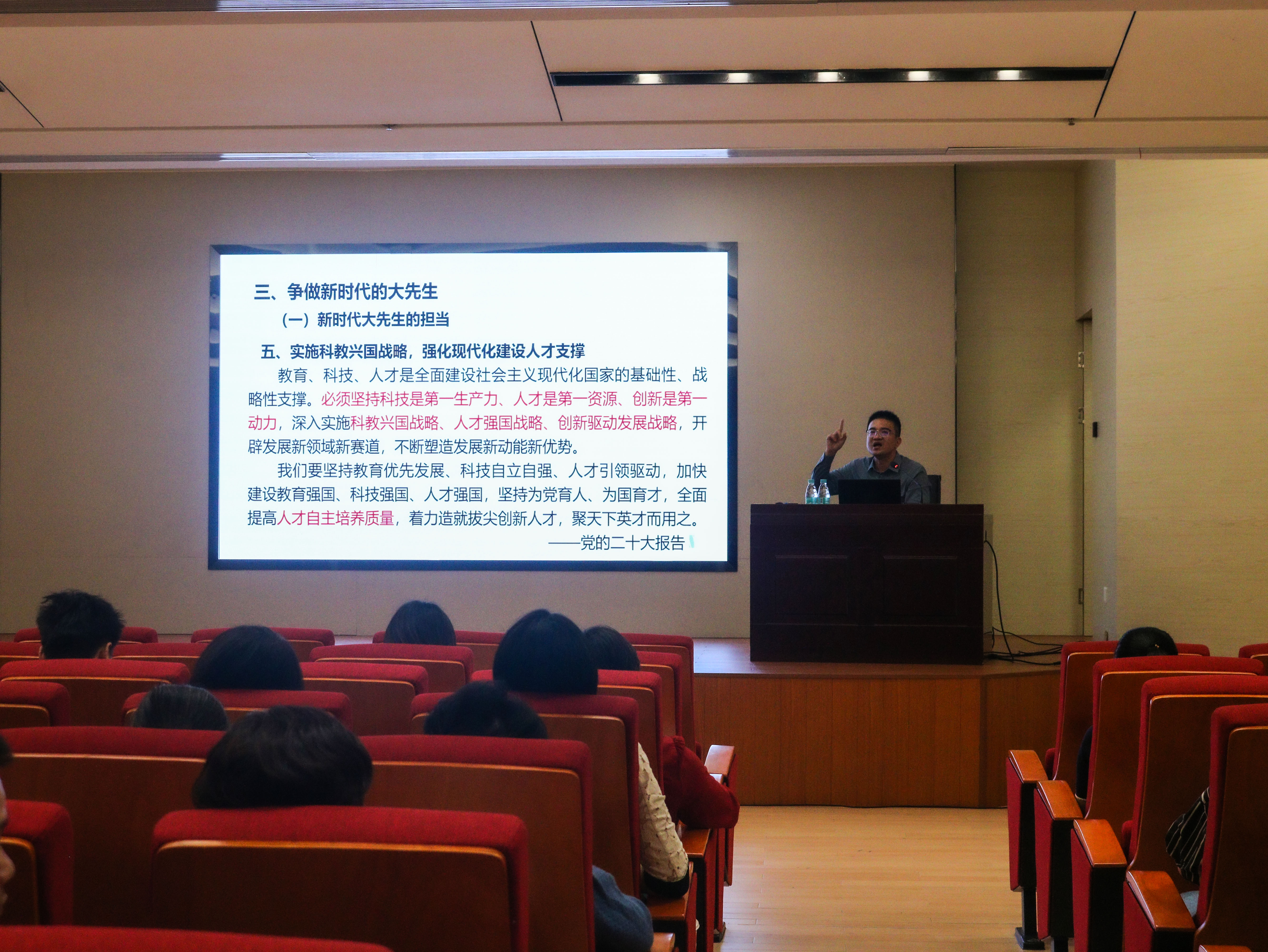陳東老師以“爭(zhēng)做新時(shí)代‘四有’好老師、大先生”為主題,從“有了愛(ài)就有了一切”看師德師風(fēng)、樹立“四有”好老師標(biāo)準(zhǔn)、爭(zhēng)做新時(shí)代的大先生三個(gè)方面展開,帶領(lǐng)大家重溫黨的二十大報(bào)告中“教育、科技、人才是全面建設(shè)社會(huì)主義現(xiàn)代化國(guó)家的基礎(chǔ)性、戰(zhàn)略性支撐”“培養(yǎng)什么人、怎樣培養(yǎng)人、為誰(shuí)培養(yǎng)人”是教育的根本問(wèn)題,并且通過(guò)豐富的教育教學(xué)實(shí)踐經(jīng)驗(yàn)以及通俗易懂的語(yǔ)言,闡釋了師德的重要意義及達(dá)成“四有”好老師的成長(zhǎng)途徑,他強(qiáng)調(diào)了教師應(yīng)該具備的品質(zhì)和行為準(zhǔn)則,如堅(jiān)持及時(shí)、精準(zhǔn)、到位原則,以仁愛(ài)之心關(guān)心學(xué)生、尊重學(xué)生發(fā)展規(guī)律等,進(jìn)一步激發(fā)大家要以德立身、以德立學(xué)、以德施教,堅(jiān)持為黨育人、為國(guó)育才的使命和擔(dān)當(dāng),不斷提高自己的教育水平和專業(yè)素養(yǎng),厚植學(xué)生的家國(guó)情懷。陳東教授春風(fēng)化雨、潤(rùn)物無(wú)聲、風(fēng)趣睿智的講座,讓廣大教師更加堅(jiān)定了身為教師的使命感和擔(dān)當(dāng)。