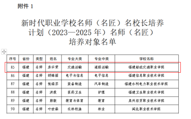 近日,教育部辦公廳下發(fā)《關于公布新時代職業(yè)學校名師(名匠)名校長培養(yǎng)計劃(2023—2025年)培養(yǎng)對象和培養(yǎng)基地名單的通知》,確定高等職業(yè)院校名師(名匠)培養(yǎng)對象210人、中等職業(yè)學校名校長培養(yǎng)對象50人。經濟與管理學院房曰榮教授入選為高等職業(yè)院校名師培養(yǎng)對象。
