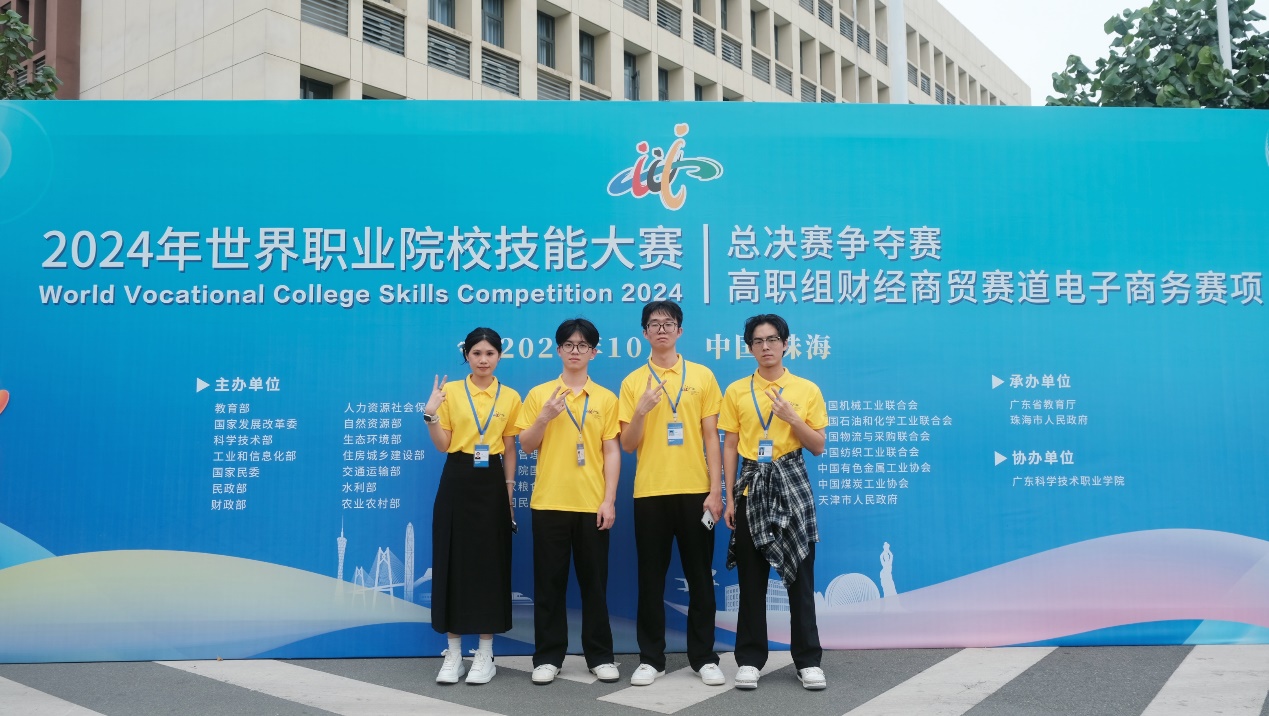 10月26日-10月28日,2024年世界職業(yè)院校技能大賽總決賽爭奪賽高職組財(cái)經(jīng)商貿(mào)賽道電子商務(wù)賽項(xiàng)在廣東科學(xué)技術(shù)職業(yè)學(xué)院開賽。該賽項(xiàng)吸引了全國高職院校63支隊(duì)伍252名選手同臺(tái)競技。我院由經(jīng)濟(jì)與管理學(xué)院院長房曰榮(領(lǐng)隊(duì)),林麗萍、方思兩位指導(dǎo)老師及胡慧武、馮晉、林祉龍、吳瓊四位同學(xué)組成的參賽團(tuán)隊(duì)參賽,并在總決賽中喜獲金獎(jiǎng)。
