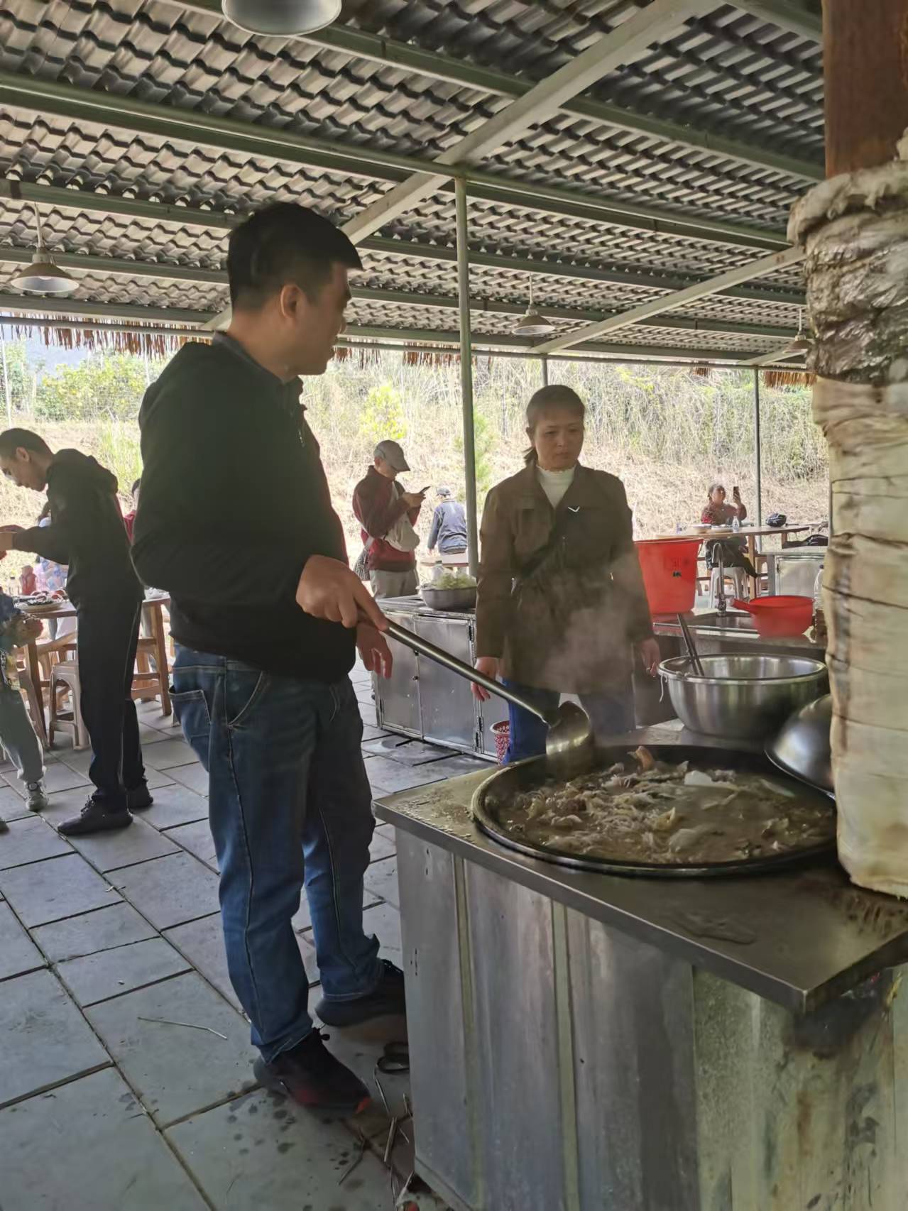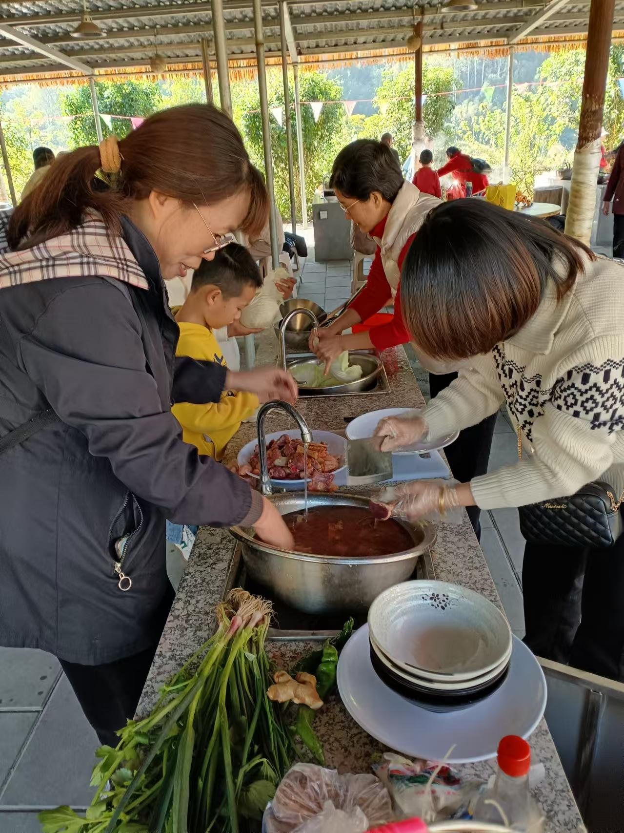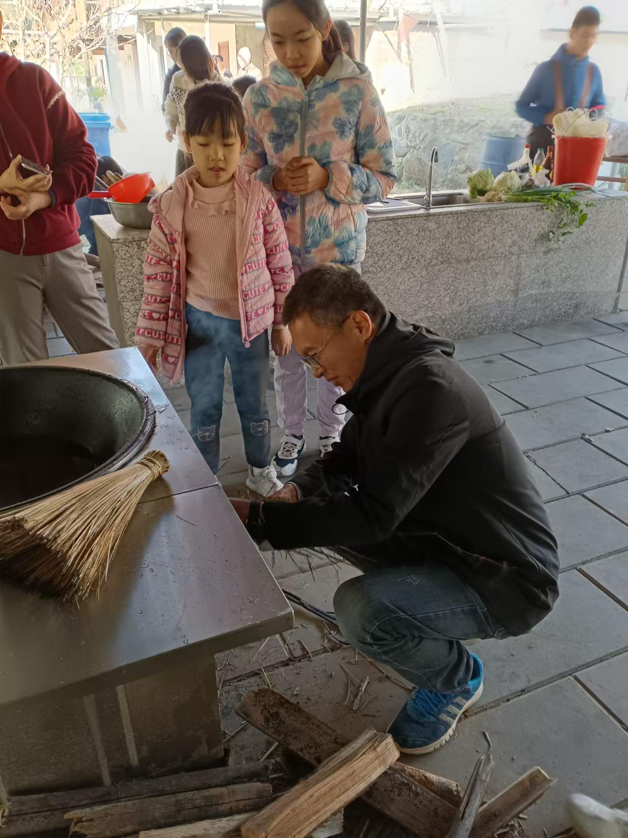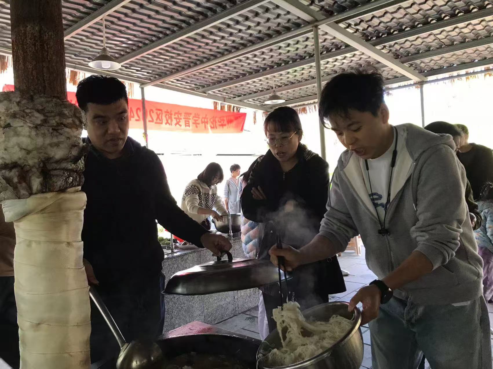 接著,步入梅園別苑,老師們親身體驗了一次知青年代的生活方式:從劈柴、生火到洗菜、烹飪,大家共同合作完成了一頓具有當?shù)靥厣牟窕鹪畲蟛?。這不僅僅是一次簡單的烹飪活動,更是對過去生活方式的一種深刻體驗和感悟。