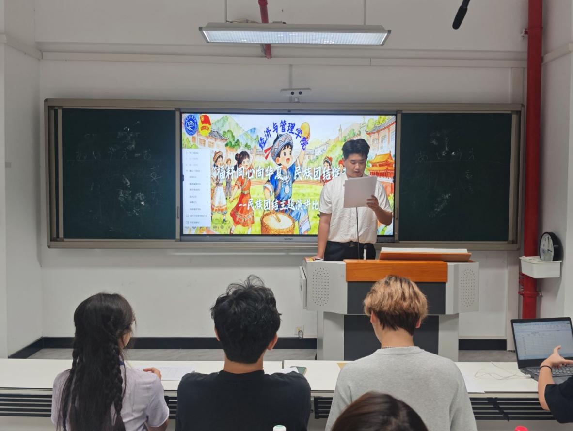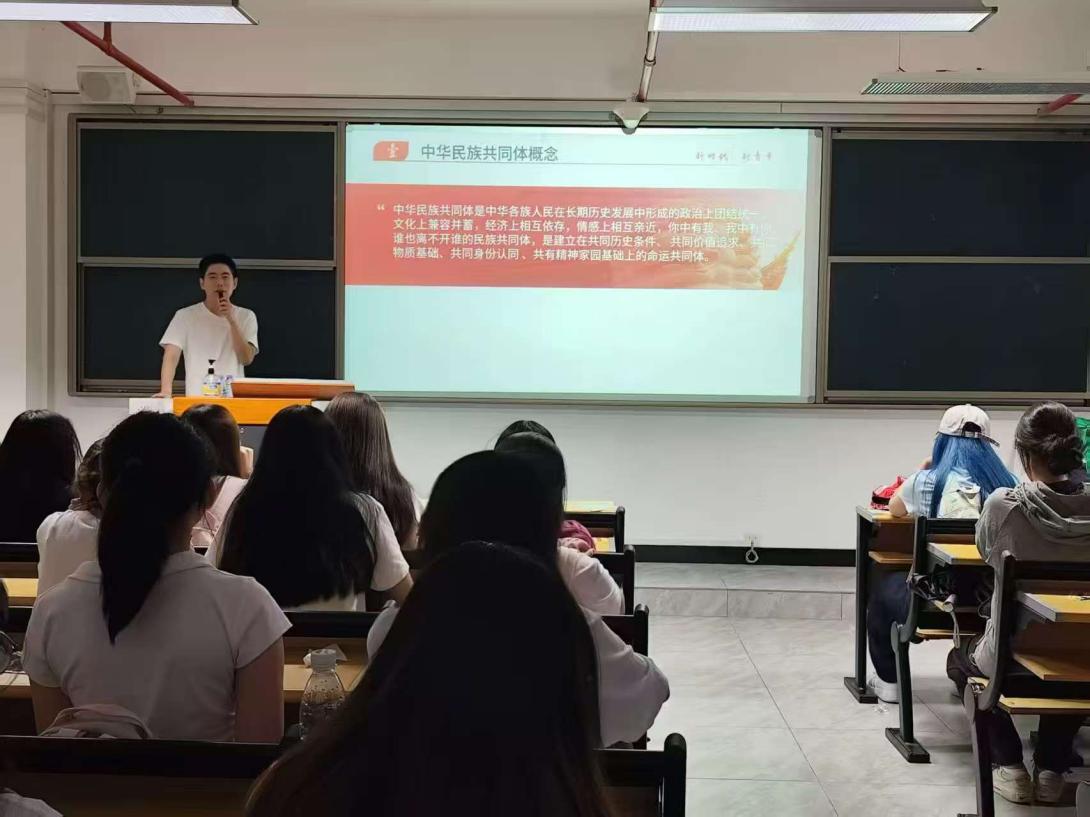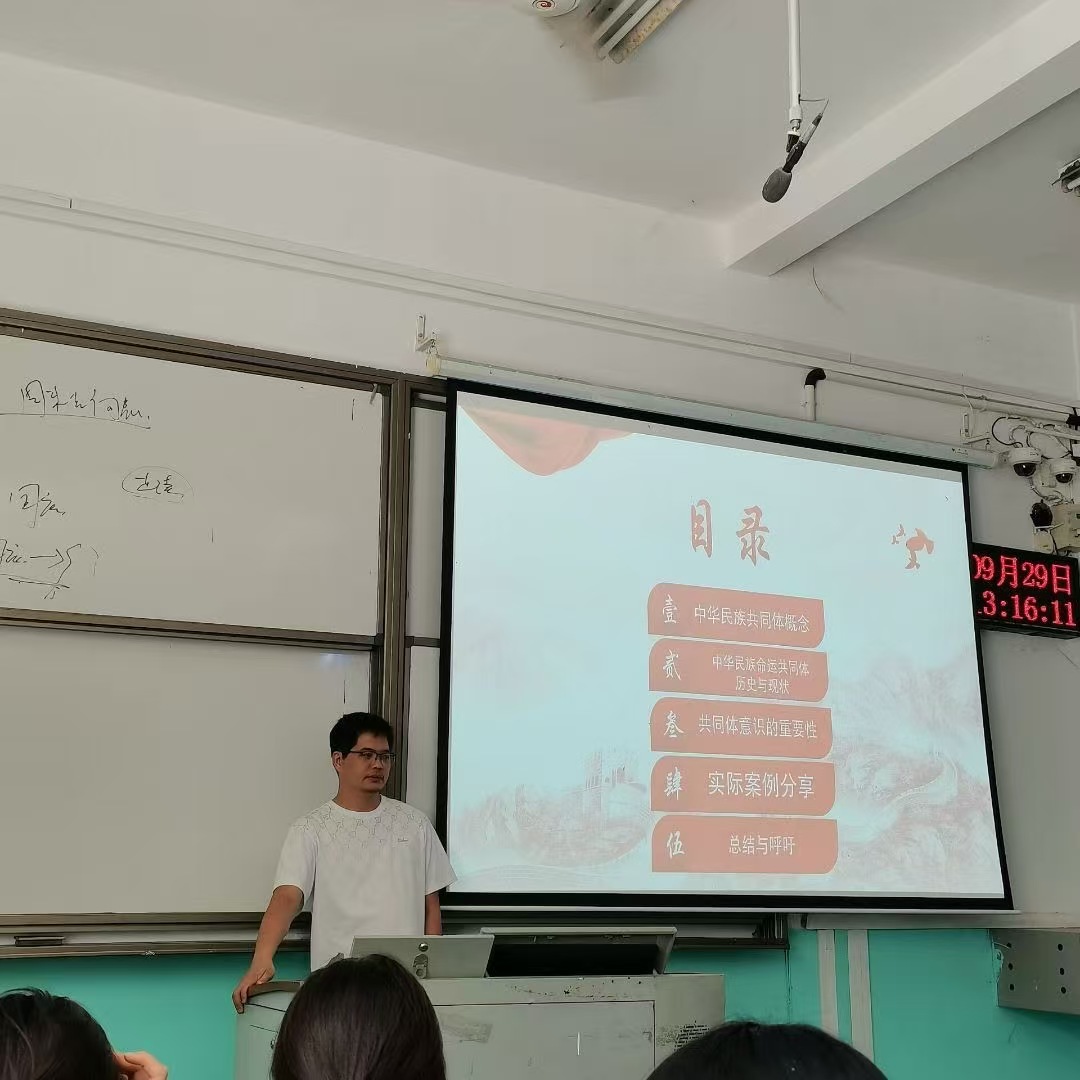 主題班會(huì)是本次活動(dòng)的開(kāi)篇之作。班會(huì)上,由輔導(dǎo)員通過(guò) PPT 展示,向同學(xué)們介紹了我國(guó)各民族的分布、人口、語(yǔ)言、風(fēng)俗習(xí)慣等基本情況,讓同學(xué)們對(duì)我國(guó)的民族大家庭有了更全面的了解。各民族在相互學(xué)習(xí)、交流融合中形成的獨(dú)特風(fēng)貌和共同價(jià)值追求。隨后,來(lái)自不同民族的同學(xué)紛紛上臺(tái)分享自己的民族故事、風(fēng)俗習(xí)慣以及在與其他民族同學(xué)相處中的溫馨故事,現(xiàn)場(chǎng)氣氛溫馨而熱烈。通過(guò)本次班會(huì),同學(xué)們不僅增強(qiáng)了民族團(tuán)結(jié)意識(shí),豐富了民族文化知識(shí),還營(yíng)造了團(tuán)結(jié)和諧的校園氛圍。在今后的工作中,我們將繼續(xù)深入開(kāi)展民族團(tuán)結(jié)教育活動(dòng),不斷創(chuàng)新活動(dòng)形式,豐富活動(dòng)內(nèi)容,努力提高民族團(tuán)結(jié)教育的實(shí)效性。同時(shí),我們也將積極引導(dǎo)同學(xué)們將民族團(tuán)結(jié)的精神轉(zhuǎn)化為實(shí)際行動(dòng),在學(xué)習(xí)和生活中,關(guān)心關(guān)愛(ài)各民族同學(xué),共同為實(shí)現(xiàn)中華民族偉大復(fù)興的中國(guó)夢(mèng)而努力奮斗。