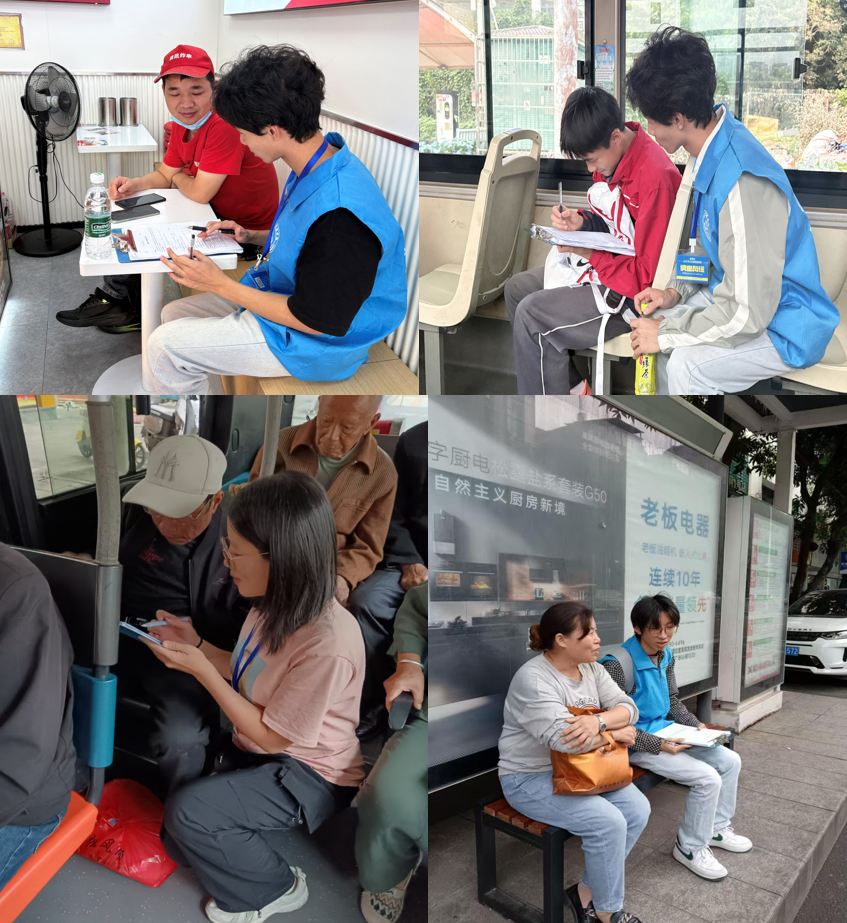 調(diào)查團隊采用“點面結(jié)合、動靜相輔”的科學方法,系統(tǒng)推進數(shù)據(jù)采集工作。首日,團隊深入龍賢、俊賢、西關等18個街道社區(qū),面向社區(qū)居民開展問卷調(diào)查,重點了解日常出行的整體滿意度與共性需求。隨后兩日,團隊轉(zhuǎn)戰(zhàn)府頭門、永輝超市、陽光城及火車站等核心公交樞紐,在高峰與平峰時段分散布點,確保樣本覆蓋不同線路、不同出行目的的乘客。同時,團隊分組進行跟車調(diào)查,實地記錄車輛運行狀況、車廂環(huán)境及乘客實時反饋,從而在靜態(tài)問卷之外,補充了動態(tài)的、場景化的觀察數(shù)據(jù)。通過多層次、立體化的調(diào)查方式,有效保障了數(shù)據(jù)來源的廣泛性與結(jié)構(gòu)代表性。