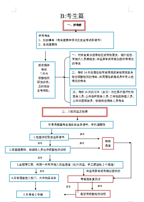 2.來自重點(diǎn)疫情地區(qū)或有旅居史、境外返回、境外人員接觸史、體溫異常或有疑似癥狀等情況,考前14天曾被隔離或曾被隔離未做過核酸檢測、共同居住家庭成員有上述情況的考生,考前14天的工作(實(shí)習(xí))崗位屬于醫(yī)療機(jī)構(gòu)醫(yī)務(wù)人員、公共場所服務(wù)人員、口岸檢疫排查人員、公共交通駕駛員或鐵路航空乘務(wù)人員的考生,上述考生須提供考前7天內(nèi)核酸檢測陰性證明后方可進(jìn)入學(xué)校,無提供核酸證明者不得進(jìn)入校園!