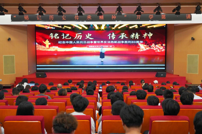 9月6日上午,《“銘記歷史,傳承精神——紀(jì)念中國人民抗日戰(zhàn)爭暨世界反法西斯戰(zhàn)爭勝利80周年”福建省大中小學(xué)開學(xué)第一課》在福建教育電視臺、學(xué)習(xí)強國福建平臺等播出。我院組織馬克思主義學(xué)院全體教師及各二級學(xué)院學(xué)生代表集中收看。