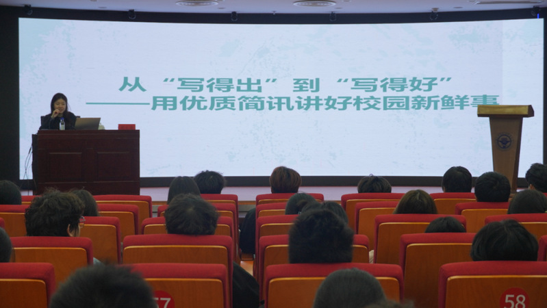 蔣豐蔓以“如何用優(yōu)質(zhì)簡(jiǎn)訊講好校園新鮮事”為主題,結(jié)合福建日?qǐng)?bào)獲獎(jiǎng)作品及我院具體案例,系統(tǒng)講解了新聞標(biāo)題與導(dǎo)語的提煉方法、活動(dòng)類與成果類簡(jiǎn)訊的寫作框架,以及人物通訊中細(xì)節(jié)挖掘與故事化表達(dá)的技巧。她通過分析各類新聞案例的撰寫策略,闡釋如何將日常工作信息轉(zhuǎn)化為真正吸引人、打動(dòng)人的“優(yōu)質(zhì)簡(jiǎn)訊”,從而生動(dòng)講好校園故事,提升新聞傳播的感染力與引導(dǎo)力。