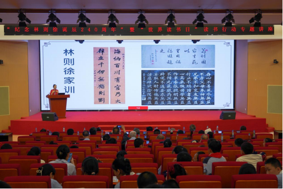 4月19日,主辦方還舉辦了公益講座為讀書行動預(yù)熱。馬尾船政文化研究會會長、福建師范大學(xué)碩士生導(dǎo)師陳悅作《林則徐與福建船政》、林則徐第六代后裔林祝光先生以家族視角分享《林則徐家風(fēng)家訓(xùn)》。講座吸引了船政后裔和福州市林則徐小學(xué)等7所學(xué)校280余名師生代表。