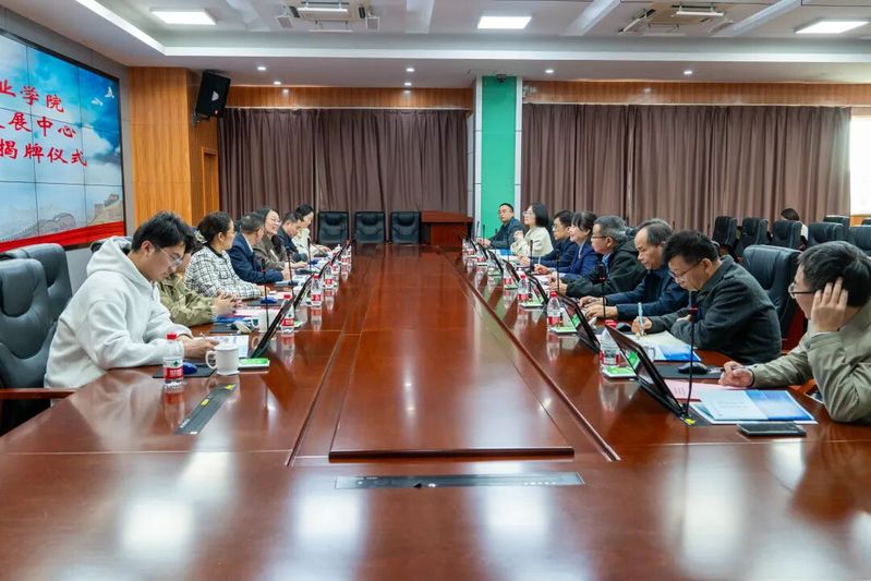 會(huì)上,陳群院長(zhǎng)與林一斌主任共同為鄉(xiāng)村振興服務(wù)中心揭牌,全體與會(huì)人員合影留念。