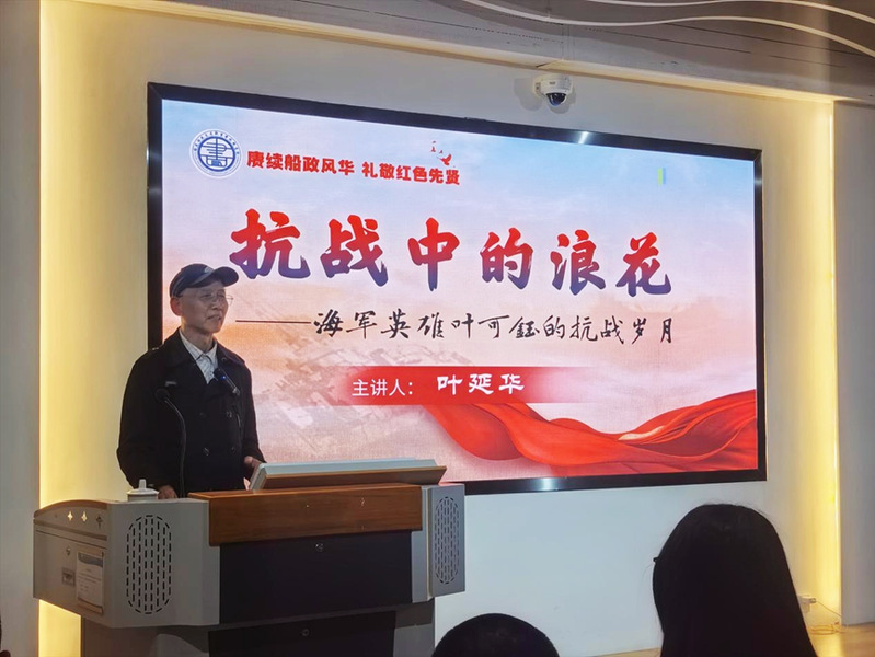 活動中,葉延華為師生帶來專題講座《抗戰(zhàn)中的浪花——海軍英雄葉可鈺的抗戰(zhàn)歲月》,深情講述其父在民族危亡之際挺身而出、以身許國的英雄事跡。
