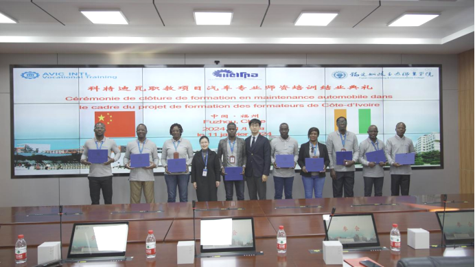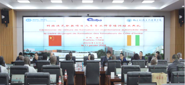 1月11日下午,我院舉辦科特迪瓦職教項(xiàng)目汽車(chē)維修專(zhuān)業(yè)師資培訓(xùn)結(jié)業(yè)典禮??铺氐贤呗毥添?xiàng)目督學(xué)科菲·古阿古·荷內(nèi),學(xué)院黨委委員、副院長(zhǎng)陳艷紅,中航國(guó)際成套設(shè)備有限公司業(yè)務(wù)四部經(jīng)理助理張航出席典禮,學(xué)院教務(wù)處、科技處、對(duì)外交流中心及汽車(chē)學(xué)院等部門(mén)負(fù)責(zé)人參加典禮。