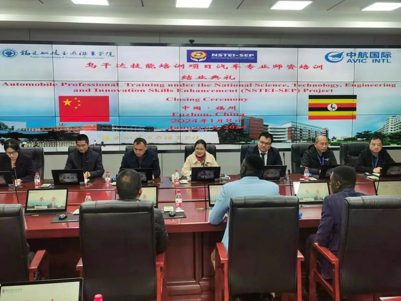 中航國際成套設(shè)備有限公司職業(yè)教育部部門經(jīng)理助理徐華京先生,學(xué)院教務(wù)處、科技處、對外交流中心等部門負(fù)責(zé)人參加了結(jié)業(yè)典禮,并與全體烏干達(dá)學(xué)員一同合影留念。