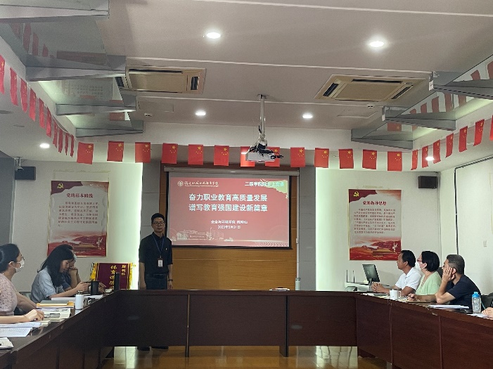 為深入開(kāi)展學(xué)習(xí)貫徹習(xí)近平新時(shí)代中國(guó)特色社會(huì)主義思想主題教育,5月31日下午,安全與環(huán)境學(xué)院院長(zhǎng)陳明仙同志為學(xué)院全體黨員上了一堂主題為“奮力職業(yè)教育高質(zhì)量發(fā)展 譜寫(xiě)教育強(qiáng)國(guó)建設(shè)新篇章”的黨課。