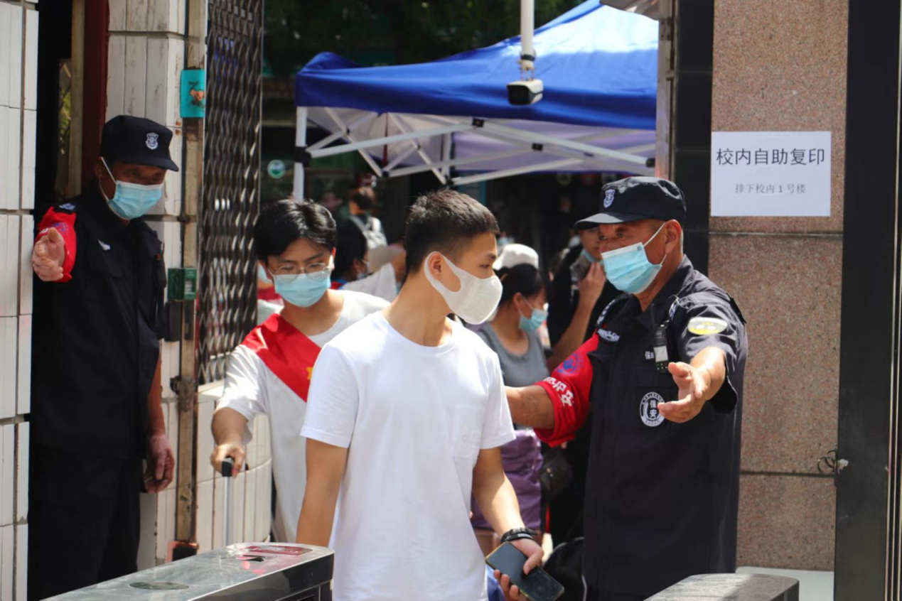 二、明確任務(wù),落實責(zé)任。安全保衛(wèi)處制定了《關(guān)于新生報到日車輛管控的通知》,迎新安保工作以數(shù)字迎新系統(tǒng)為依托,充分利用數(shù)據(jù)可視化技術(shù),精準(zhǔn)把控新生報到峰值時段,靈活調(diào)配保安隊員疏導(dǎo)人流;劃片劃點堅守在各自的崗位上,安排保安隊員指示機動車輛按規(guī)定路線行駛,停放指定區(qū)域,保障校內(nèi)交通順暢、停車有序;安排保衛(wèi)干部專人負(fù)責(zé),加強校園內(nèi)巡邏,取締各種違規(guī)攤點,禁止各類推銷行為;在校園內(nèi)重點位置張貼新生報到示意圖,并安排學(xué)生志愿者進(jìn)行安全提醒,提高安全防范意識,確保迎新工作平安、穩(wěn)定、高效開展。迎新工作中,大家各司其職,做到認(rèn)識統(tǒng)一、目標(biāo)統(tǒng)一、行動統(tǒng)一,有條不紊,相互協(xié)調(diào)。