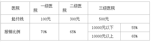 (1)個人按50元標(biāo)準(zhǔn)繳費人員,住院起付標(biāo)準(zhǔn)及報銷比例為: