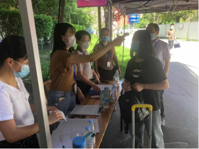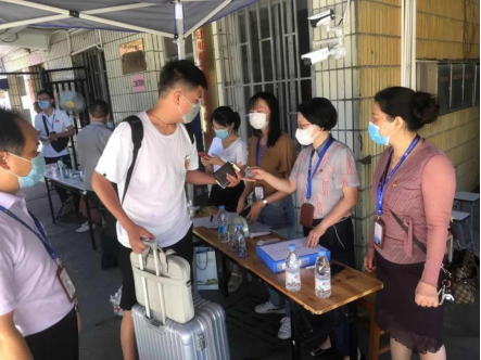 炎炎夏日,支部書記龔玲早早來(lái)到南區(qū)校園門口,組織全體黨員聯(lián)合系部老師們參與志愿工作。老師們按照入校規(guī)范流程要求,認(rèn)真引導(dǎo)學(xué)生們完成手部消毒、口罩更換、體溫檢測(cè)、健康碼核驗(yàn)等工作,保障學(xué)生們安全有序地入校。