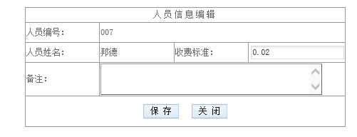選擇需要修改人員,點擊按鈕,如圖4.3-3所示,允許修改金額和備注。已開始繳費人員不能修改金額。