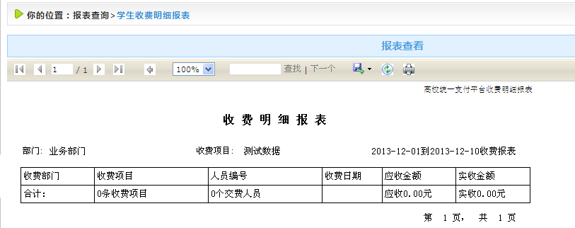 選擇需要生成報表的時間段、收費批次以及需要生成的統(tǒng)計類型,點擊生成報表按鈕。如圖4.4.3-2、4.4-3所示:
