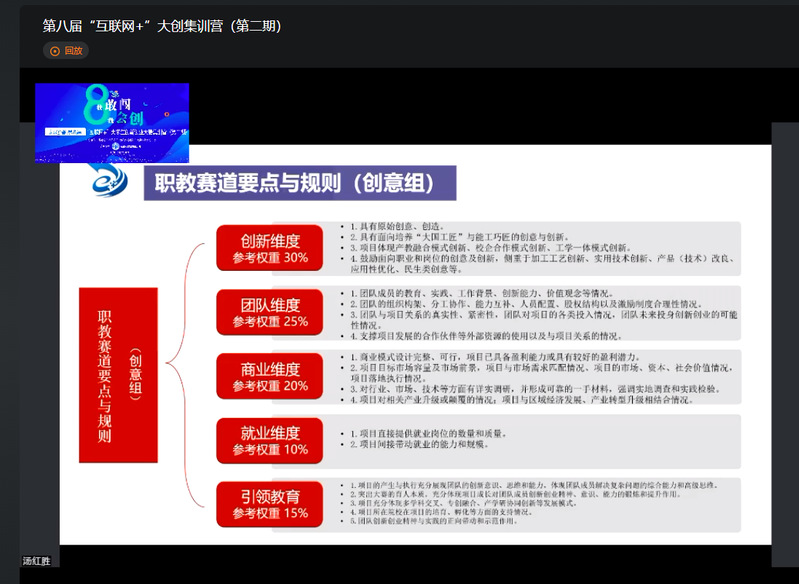 為確保培訓(xùn)的正常進(jìn)行,創(chuàng)新創(chuàng)業(yè)學(xué)院主動(dòng)聯(lián)系各職業(yè)院校了解需求,尋找合適的線上培訓(xùn)平臺,組織報(bào)名,對接專家,安排課程,盡心盡力做好集訓(xùn)準(zhǔn)備工作。在大家共同努力下,三天四場的線上培訓(xùn)順利完成。每場講座全省職業(yè)院校和應(yīng)用型本科院校師生踴躍參加,培訓(xùn)組織有序,線上授課順暢,討論互動(dòng)環(huán)節(jié)氣氛熱烈,參訓(xùn)的師生表示:本次集訓(xùn)營讓大家對“互聯(lián)網(wǎng)+”大學(xué)生創(chuàng)新創(chuàng)業(yè)大賽的政策有了更加直觀體會和準(zhǔn)確認(rèn)知,明確了大賽項(xiàng)目培育的重點(diǎn)和核心邏輯,提升了項(xiàng)目團(tuán)隊(duì)的參賽信心,為下一階段校賽和省賽打下良好基礎(chǔ)。培訓(xùn)結(jié)束,我們還安排回放和授課的課件分享,為奮戰(zhàn)在抗疫一線的泉州和廈門職業(yè)院校師生提供再學(xué)習(xí)機(jī)會。