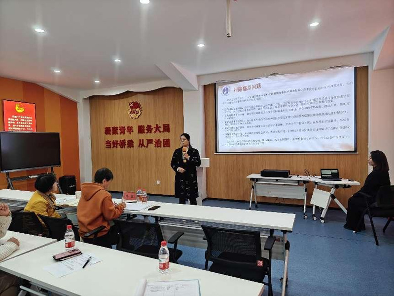 培訓活動上,創(chuàng)新創(chuàng)業(yè)學院林霞院長詳細講解了紅色筑夢之旅活動的意義和紅旅賽道的報名流程、評分規(guī)則等,并對5個紅旅項目進行指導?;顒幼詈筮€針對各團委書記提出的在開展紅色筑夢之旅和“三下鄉(xiāng)”活動存在問題和困惑進行詳細解答和探討。