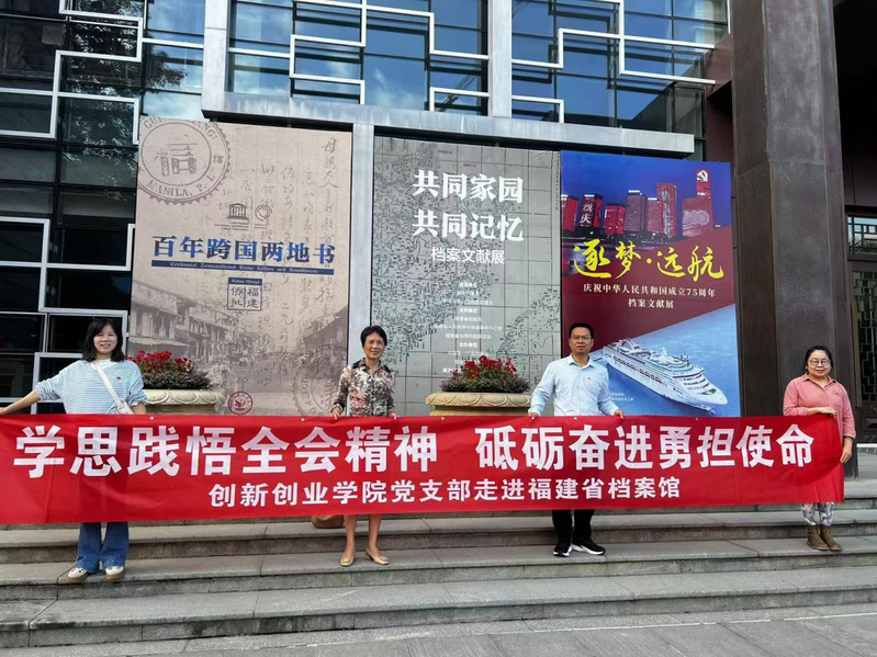 為深入學(xué)習(xí)貫徹黨的二十屆三中全會精神,在新征程上不斷汲取中國共產(chǎn)黨人榜樣的精神力量,堅定理想信念砥礪前行,11月5日,創(chuàng)新創(chuàng)業(yè)學(xué)院黨支部組織全體黨員赴福建省檔案館開展“學(xué)思踐悟全會精神,砥礪奮進勇?lián)姑?/span>”主題黨日活動。