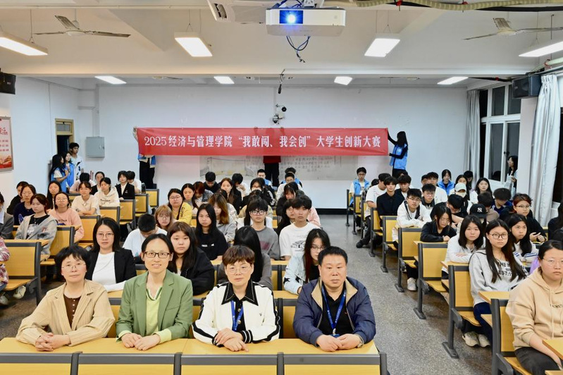 為貫徹落實(shí)黨的二十大精神,深入貫徹落實(shí)習(xí)近平總書記關(guān)于教育的重要論述和給“青年紅色筑夢之旅”大學(xué)生回信及中國國際大學(xué)生創(chuàng)新大賽參賽學(xué)生代表重要回信精神,全面推進(jìn)教育、科技、人才工作,把創(chuàng)新教育貫穿教育活動(dòng)全過程,以創(chuàng)造之教育培養(yǎng)創(chuàng)造之人才,持續(xù)深化我院創(chuàng)新創(chuàng)業(yè)教育改革、提升大學(xué)生創(chuàng)新創(chuàng)業(yè)能力,經(jīng)濟(jì)與管理學(xué)院于2025年4月10日在求實(shí)樓408教室舉辦“我敢闖 我會(huì)創(chuàng)”大學(xué)生創(chuàng)新大賽。