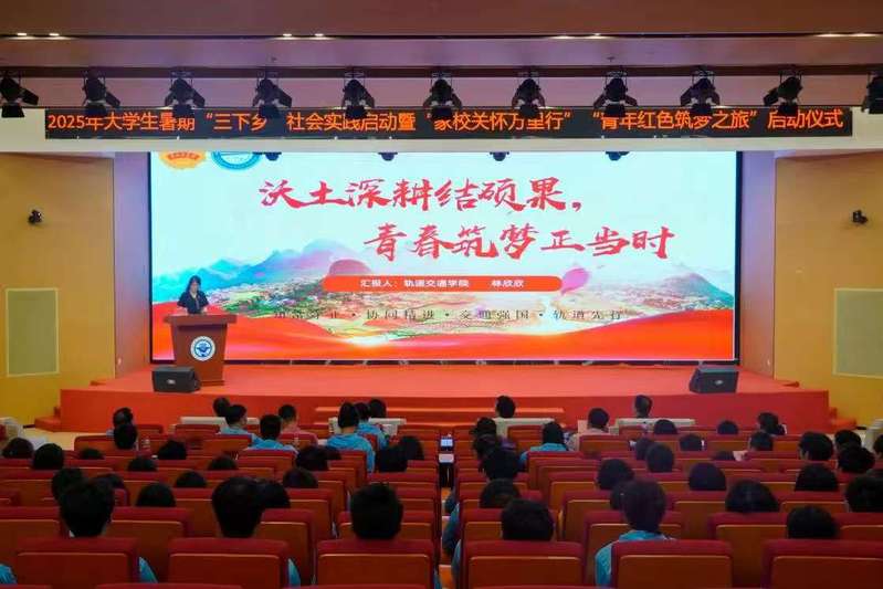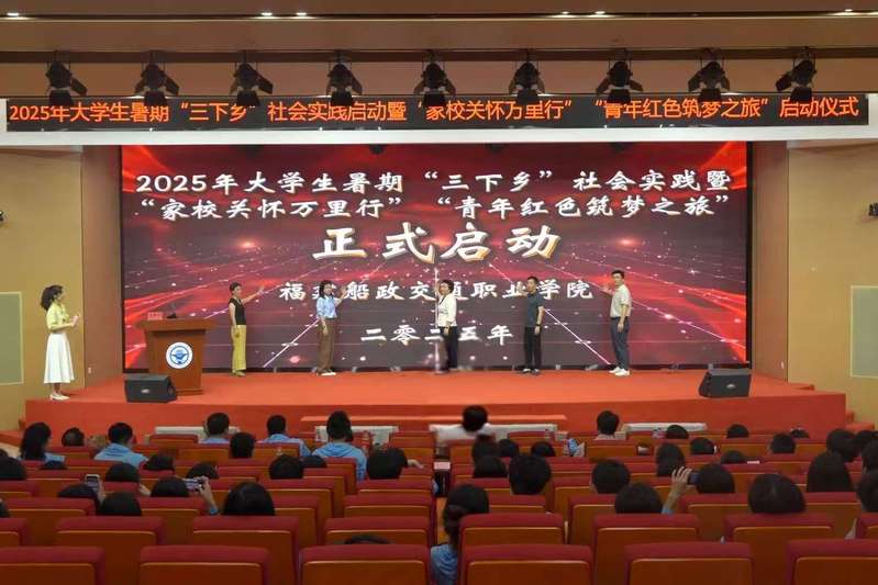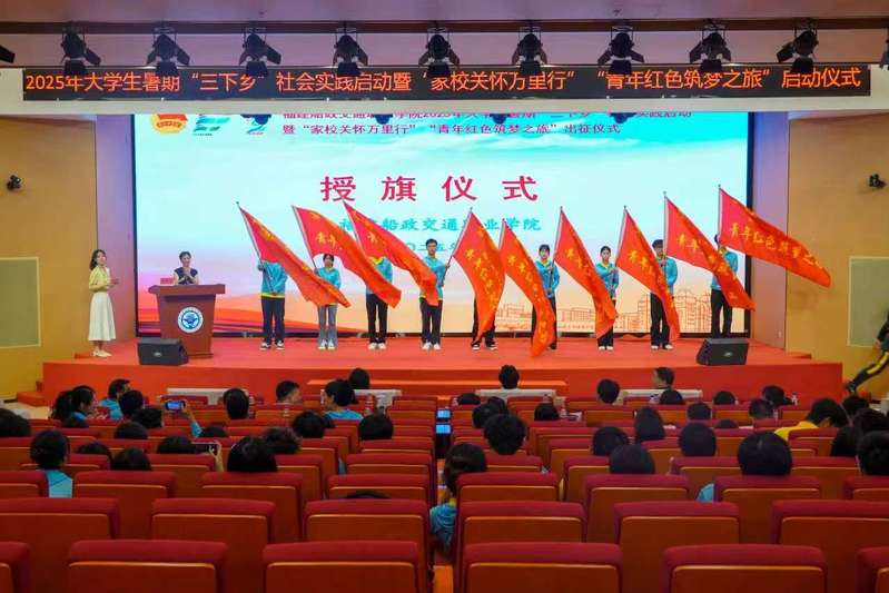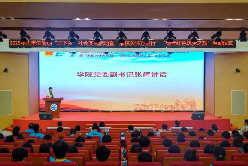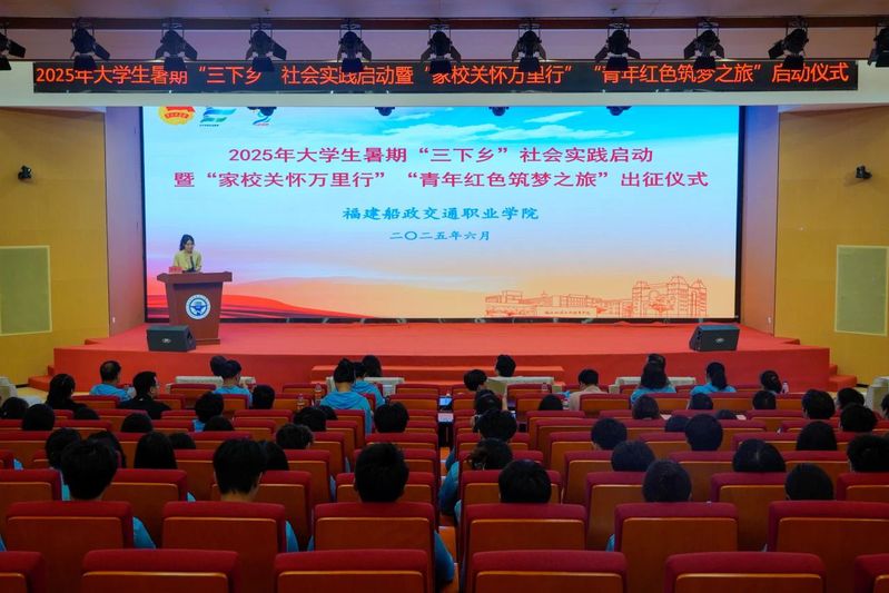 6月25日下午,福建船政交通職業(yè)學(xué)院2025年大學(xué)生暑期“三下鄉(xiāng)”社會實踐啟動暨 “家校關(guān)懷萬里行”“青年紅色筑夢之旅”出征儀式在福船園藝新樓331報告廳舉行。學(xué)院黨委副書記張輝,黨委宣傳統(tǒng)戰(zhàn)部、學(xué)生工作部、團委、創(chuàng)新創(chuàng)業(yè)學(xué)院、馬克思主義學(xué)院等相關(guān)職能部門、二級學(xué)院,以及參加大學(xué)生暑期“三下鄉(xiāng)”社會實踐“家校關(guān)懷萬里行”“青年紅色筑夢之旅”的師生代表們參加出征儀式。儀式由學(xué)院團委學(xué)生社團管理部部長湯曉玲主持。