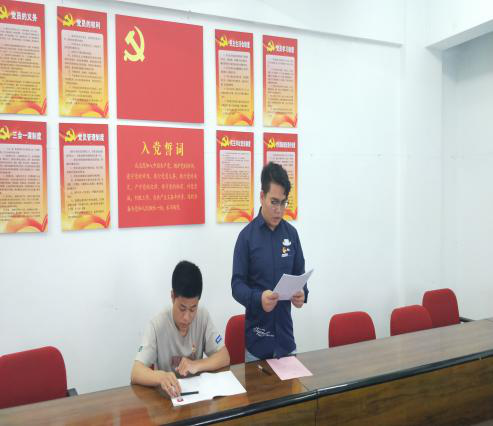 大會最后,在蔡書記的帶領(lǐng)下,在場支部黨員與兩位預(yù)備黨員面對黨旗進行光榮的宣誓儀式,希望在場的支部黨員同志們,能夠不忘入黨初心,讓兩名新加入的預(yù)備黨員同志永遠記住今天這個日子,永遠記住現(xiàn)在這個時刻,永遠記住對黨發(fā)出的錚錚誓言,努力用實際行動為黨徽增光,為黨旗添彩,堂堂正正做人,為共產(chǎn)主義事業(yè)奮斗終身。
