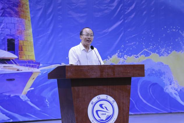院長李翼登臺,以厚重而充滿期許的致辭,為新生上了“大學(xué)第一課”。他回顧了學(xué)院秉承“精益求精、密益求密”的船政精神所取得的輝煌成就,并聚焦“海洋強(qiáng)國”戰(zhàn)略,對同學(xué)們新學(xué)年的成長與發(fā)展寄予厚望。他鼓勵大家不僅要深耕專業(yè)、錘煉技能,成為未來的大國工匠;更要勇于探索,在豐富的校園生活中鍛造全面的人格,將個人理想融入國家發(fā)展的藍(lán)色航道。