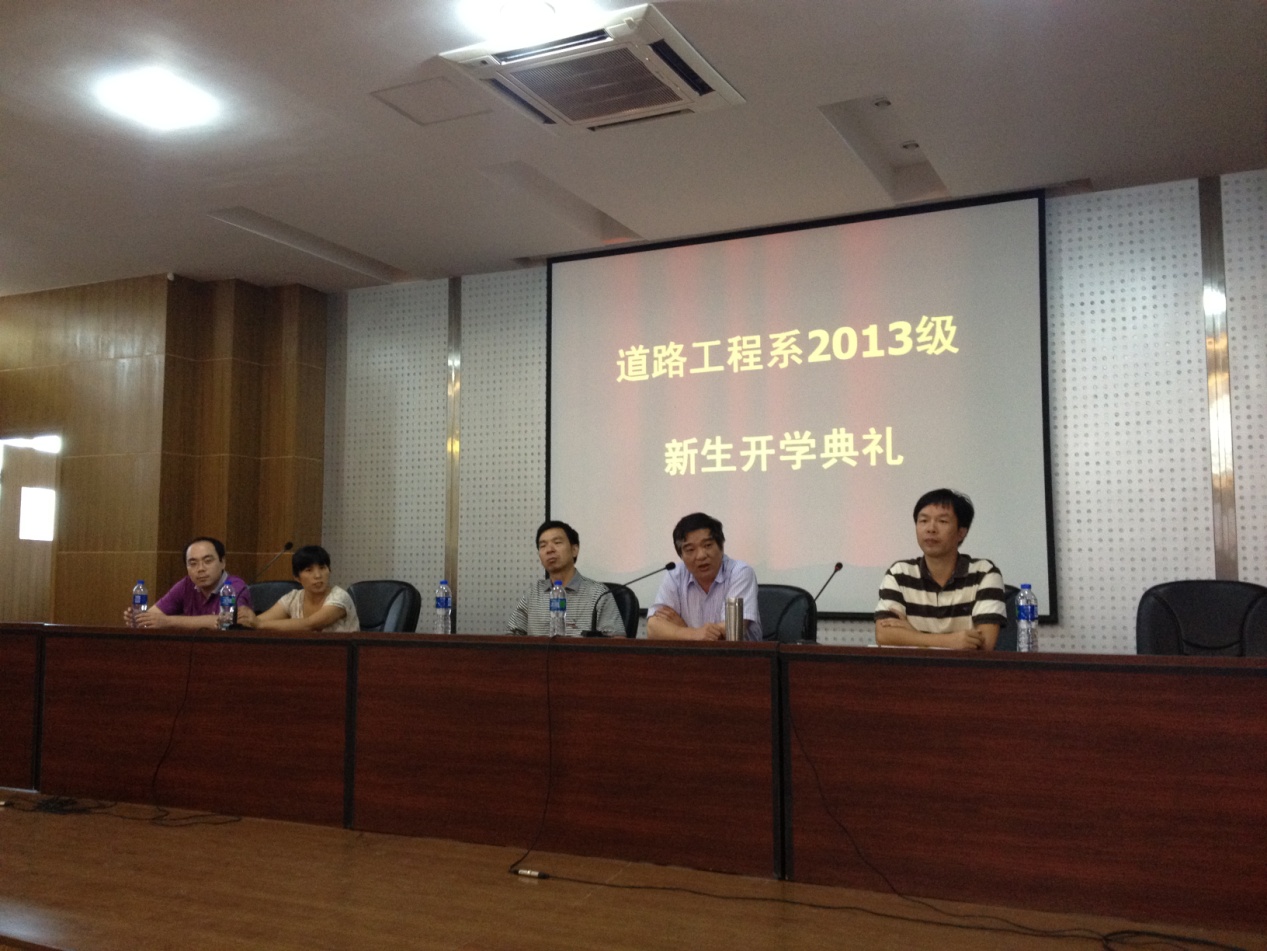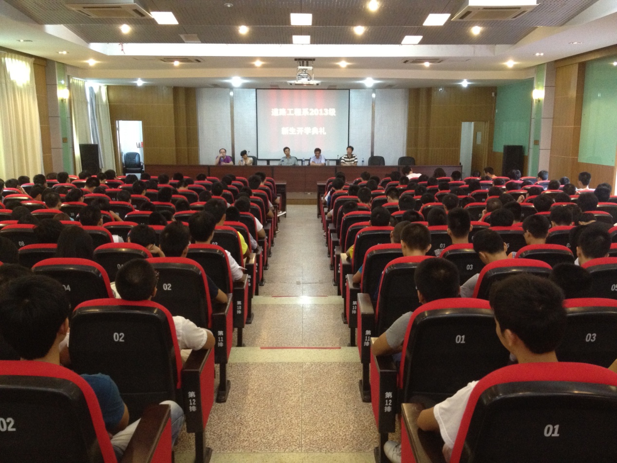 2013年9月12日下午4:30,道路工程系2013級新生開學(xué)典禮在一號樓六樓學(xué)術(shù)報(bào)告廳召開。道路工程系書記王心金、系主任周志堅(jiān)、俞素平副教授、陳勇鋒老師、陳艷瓊老師、全體輔導(dǎo)員以及300多名學(xué)生參加了會議。