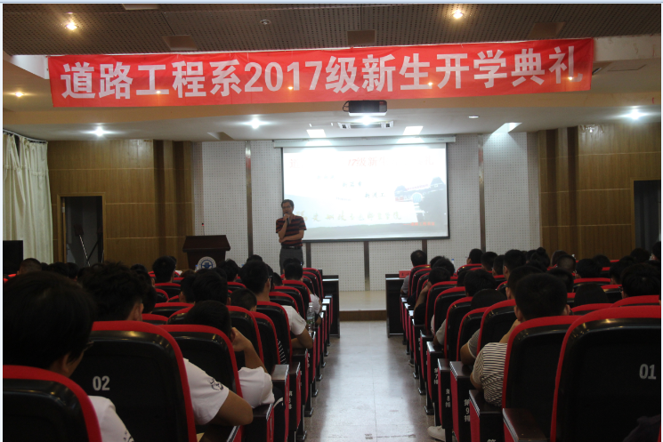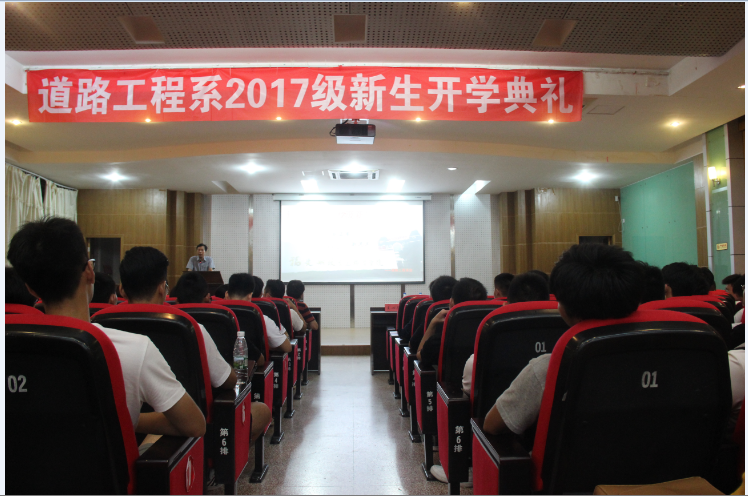 9月7日晚上,我系在1#學(xué)術(shù)報(bào)告廳隆重舉行2017級(jí)新生開學(xué)典禮。道路工程系書記王心金老師,系主任高杰老師,系副主任余素平老師、盛海洋老師,團(tuán)總支書記陳若蘅老師,2017級(jí)輔導(dǎo)員藍(lán)凌燕老師、林鋮老師等出席了典禮。我系各教研室負(fù)責(zé)人和近600名新生參加了典禮。