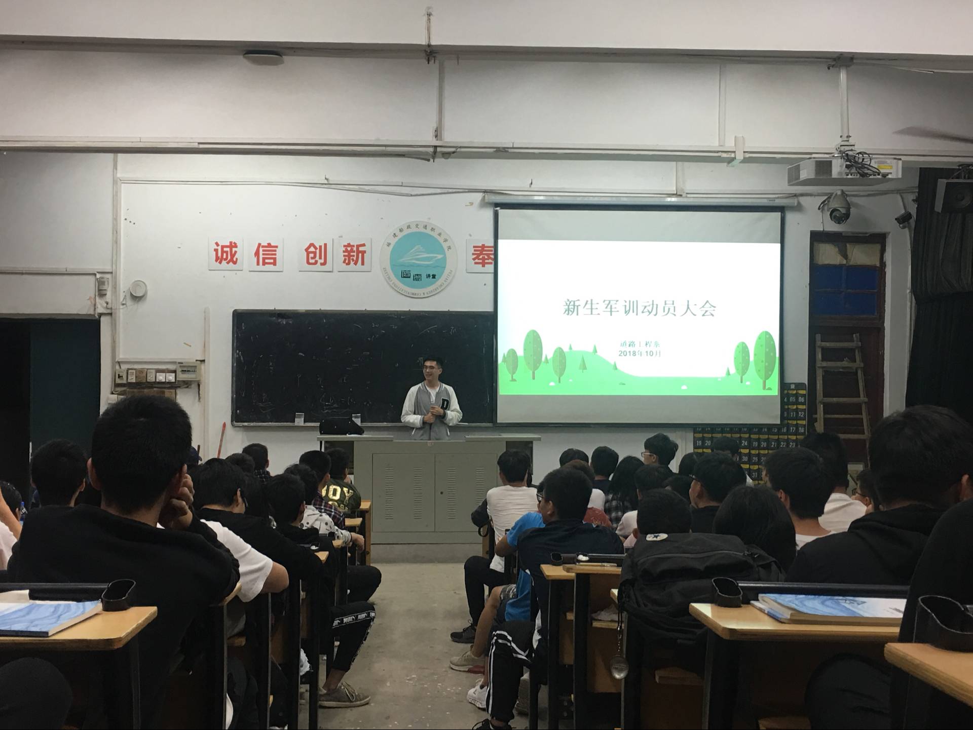 按照學(xué)院統(tǒng)一部署和系部統(tǒng)一安排,10月22日至27日,我系2018級新生輔導(dǎo)員組織開展“2018級軍訓(xùn)動員大會”。在大會上,輔導(dǎo)員就2018級新生軍訓(xùn)事宜進(jìn)行統(tǒng)一安排部署,主要強調(diào)了軍訓(xùn)重要性、軍訓(xùn)考核要求、軍訓(xùn)注意事項等內(nèi)容,重點強調(diào)了軍訓(xùn)期間的安全問題,要求學(xué)生務(wù)必調(diào)整心態(tài),量力而行,軍訓(xùn)出操前必須吃早餐,注意補充營養(yǎng)等。