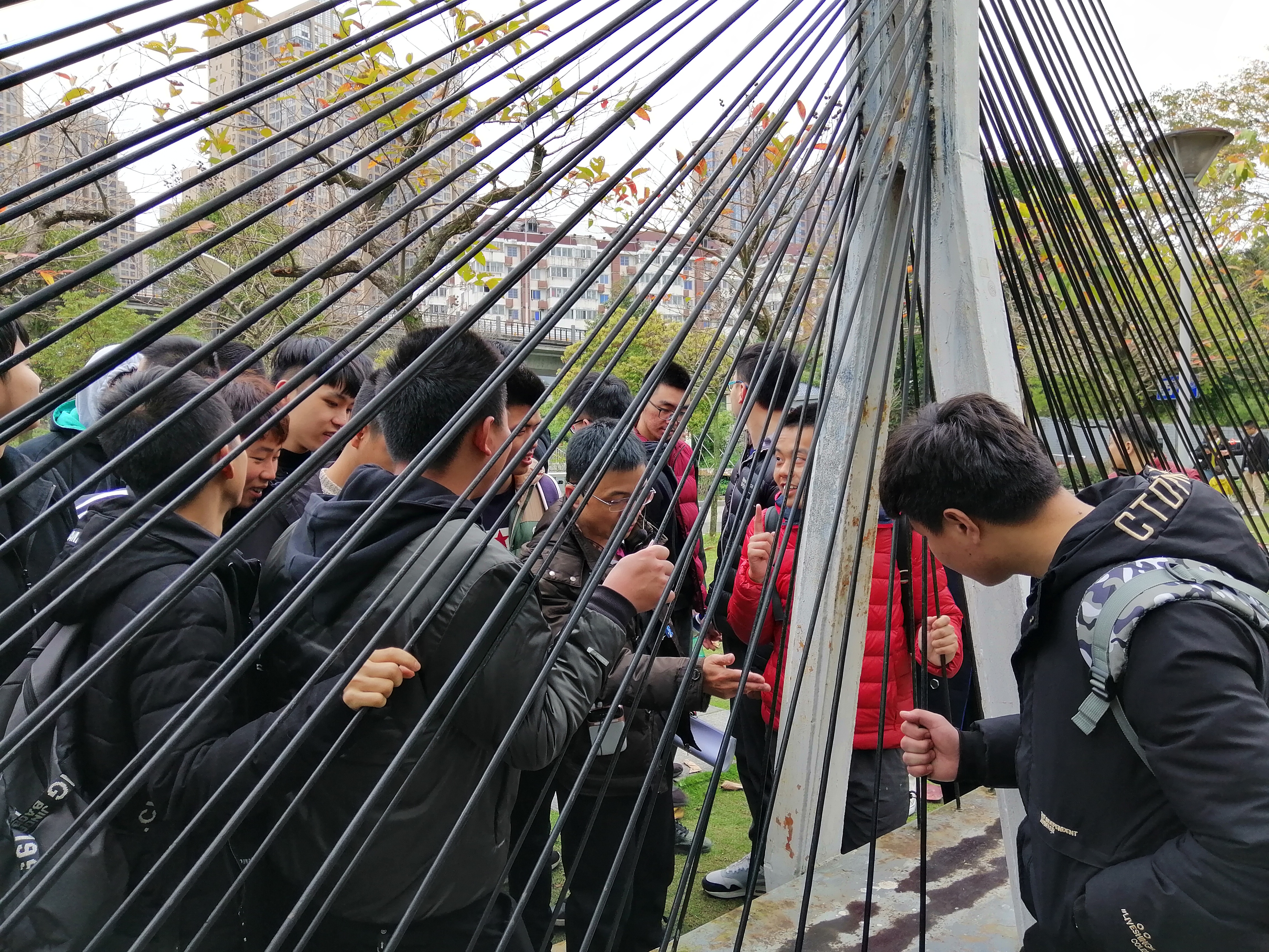 2019年3月23日,為配合《橋梁下部結(jié)構(gòu)施工》課程的授課,在任課教師陳世九副教授的帶領(lǐng)下,我系17道路橋梁工程技術(shù)1、2班共86位同學(xué)前往福州江心公園、南江濱公園、北江濱公園橋梁園等處實(shí)地參觀三縣洲大橋、尤溪洲大橋橋梁的下部結(jié)構(gòu)構(gòu)造,了解梁橋、拱橋、斜拉橋和懸索橋等各類橋型結(jié)構(gòu)。此次校外參觀實(shí)習(xí)加深了同學(xué)們對(duì)橋梁下部結(jié)構(gòu)的認(rèn)識(shí),提高了同學(xué)們對(duì)本課程的興趣,達(dá)到了預(yù)期的教學(xué)目標(biāo)。當(dāng)天帶隊(duì)參觀的老師還有:張金霖、陳勇烽、曾惠珍、江夢(mèng)霞、林鋮(輔導(dǎo)員)。