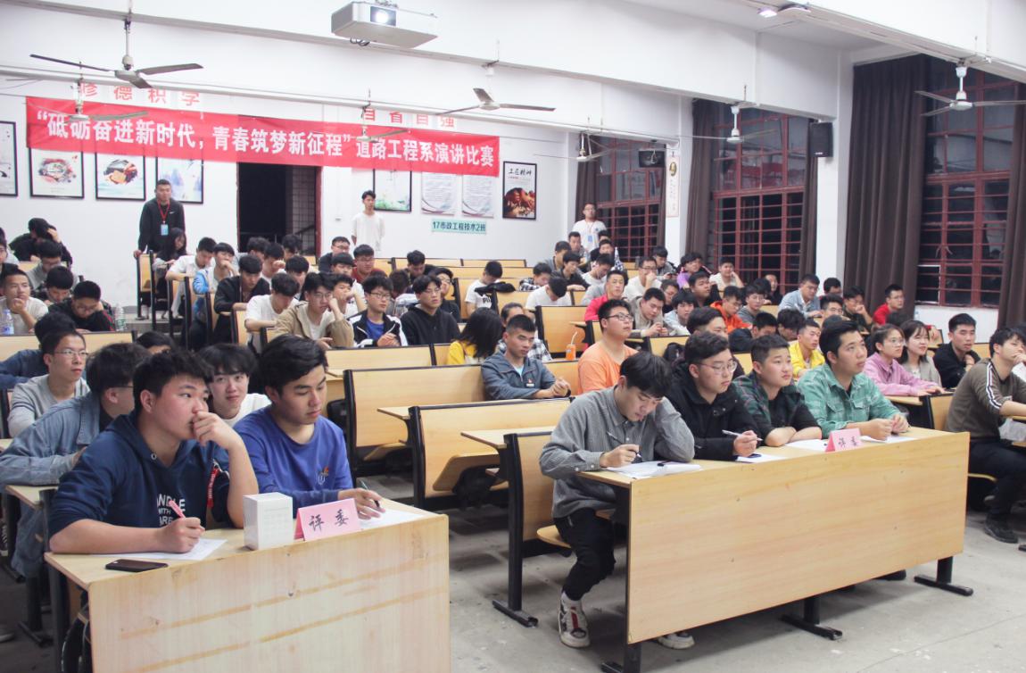 為了豐富校園生活,營造濃厚的校園文化氛圍,道路工程系于2019年3月20日在土2階梯教室舉辦了主題為“砥礪奮進新時代,青春筑夢新征程”的演講比賽。