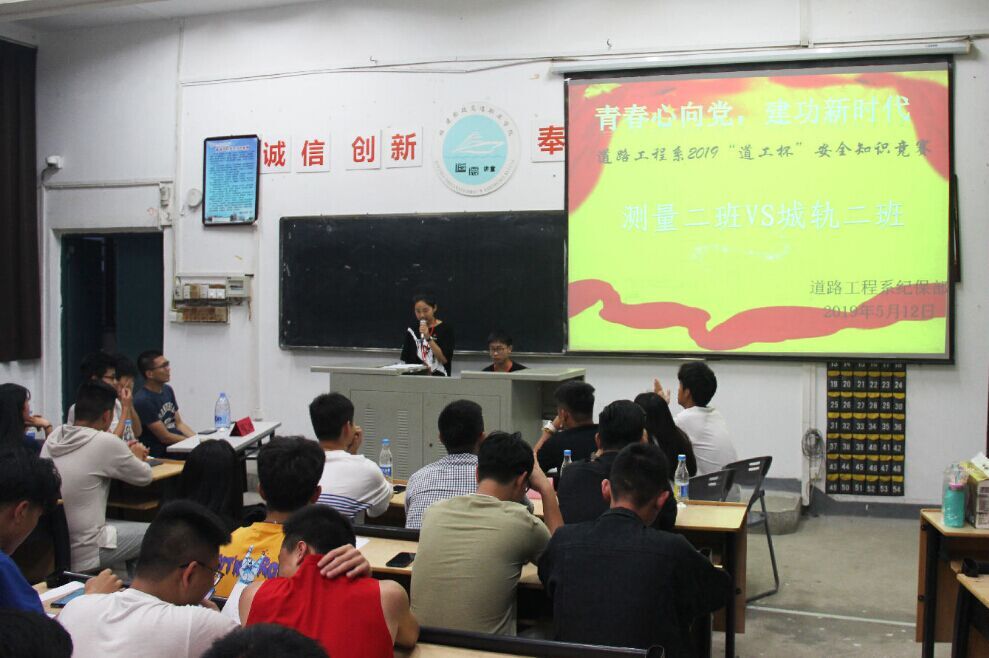 為加強同學(xué)們的安全防護(hù)意識,減少和防止人身傷害,促進(jìn)養(yǎng)成良好的生活習(xí)慣,道路工程系于2019年4月25日在8號樓土一、土二階梯教室舉辦了“道工杯”安全知識競賽。
