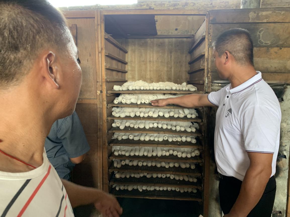 圖十六:村主任伍玉炎帶領(lǐng)隊(duì)員參觀竹蓀大棚生產(chǎn)基地