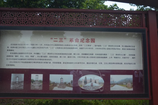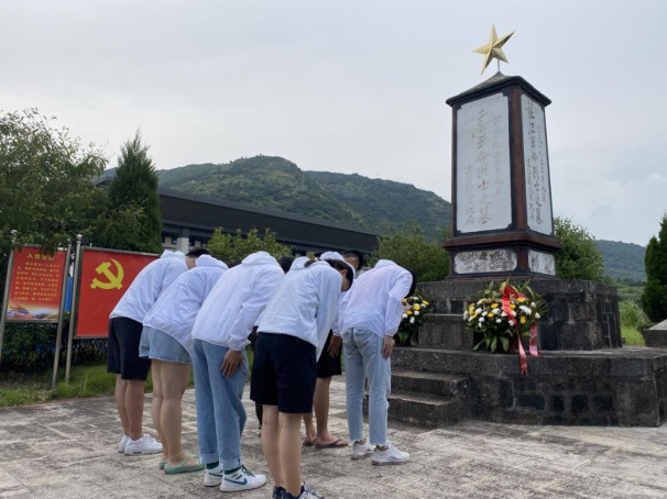 接著,團隊一行人來到透堡鎮(zhèn)“二三”革命紀念園。走入紀念園,習近平總書記“飲水思源,決不能忘了老區(qū)蘇區(qū)人民”的重要指示映入眼簾。實踐團隊一行向烈士默哀,并為烈士紀念碑獻上了花籃。當?shù)刎撠熑嘶仡櫫送恋馗锩鼤r期可歌可泣的革命斗爭歷史,重點介紹了楊而菖烈士英勇頑強,不畏犧牲的革命事跡,讓團隊成員深刻感受到革命先烈創(chuàng)建和保衛(wèi)連羅蘇區(qū)的豐功偉績,牢記傳承紅色基因的歷史使命。