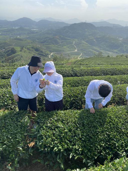 在當?shù)刎撠熑藥ьI(lǐng)下,實踐團隊成員來到長龍第一茶廠,體驗傳統(tǒng)采茶、制茶流程,感受連江“綠色”文化。茶廠負責人帶領(lǐng)團隊成員參觀茶廠,并為團隊講解制茶工藝。據(jù)茶廠負責人介紹,茶廠為保證茶葉的新鮮度,茶農(nóng)在采茶季節(jié)必須每天4點鐘開始采摘茶葉,茶農(nóng)采摘時嚴格按照“一芽一葉”采摘,為炒茶提供最好的原料。茶葉炒制工序復(fù)雜、步驟繁多,每五斤茶葉才能炒出一斤的好茶,因此茶廠十分注重制茶技藝傳承,努力將現(xiàn)代工藝的穩(wěn)重成熟與傳統(tǒng)工藝的厚重歷史相結(jié)合。