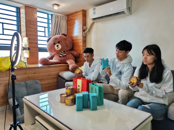“我們家在連江縣海拔最高的鎮(zhèn)——長龍鎮(zhèn)”“盧峰山雨量充沛、云霧多、空氣濕度大、漫射光強,具有適合茶樹生長的優(yōu)越條件”“‘茶垅七墩’是我們家綠茶和紅茶的品牌,也是連江縣長龍鎮(zhèn)的特色品牌”“我們的茶葉沒有任何污染,喝到嘴里除了有濃郁的茶香,還有醇厚的回甘”……“直播帶貨”火熱的當下,在經(jīng)過一天的考察和調(diào)研后,在帶隊老師的指導(dǎo)下,實踐團隊也開始“直播帶貨”。實踐團隊利用直接高效的“直播帶貨”這一新型零售模式,發(fā)揮實踐團隊成員的宣講特長,幫助茶廠提高知名度,推廣連江富有特色的“茶垅七墩”茶產(chǎn)品。實踐團隊成員從營養(yǎng)、科學的角度切入,既有現(xiàn)場品鑒茶產(chǎn)品說感受,又有引導(dǎo)范兒。在“直播帶貨”過程中,團隊成員少了對茶葉喋喋不休的夸耀,更多展現(xiàn)了自己哼著歌兒與父親母親一起上山采茶、制茶,或是嬉笑著揀茶的過程。通過他們繪聲繪色有理有據(jù)的現(xiàn)場“表達”,“茶垅七墩”茶產(chǎn)品的細節(jié)特色逐漸顯現(xiàn),他們與家鄉(xiāng)故事也令人十分動容。參加“直播帶貨”的楊同學激動地說:“沒想到鏡頭里的家鄉(xiāng)這么美,沒想到直播帶貨有這么強大的力量!沒想到通過直播還能為家鄉(xiāng)做實事”。
