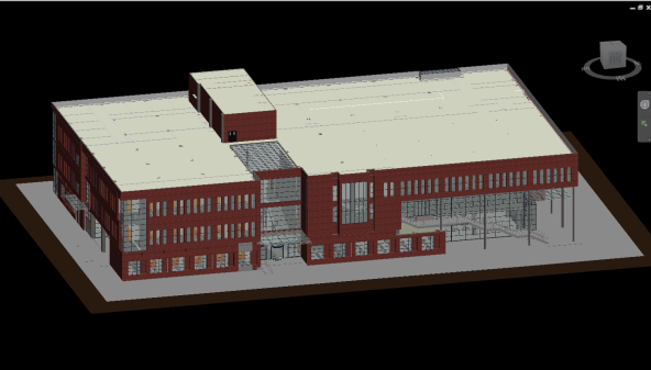 BIM作品:實訓(xùn)大樓場地布置 作者:黃亞慧 BIM作品:食堂建筑模型 作者:黃淮翔