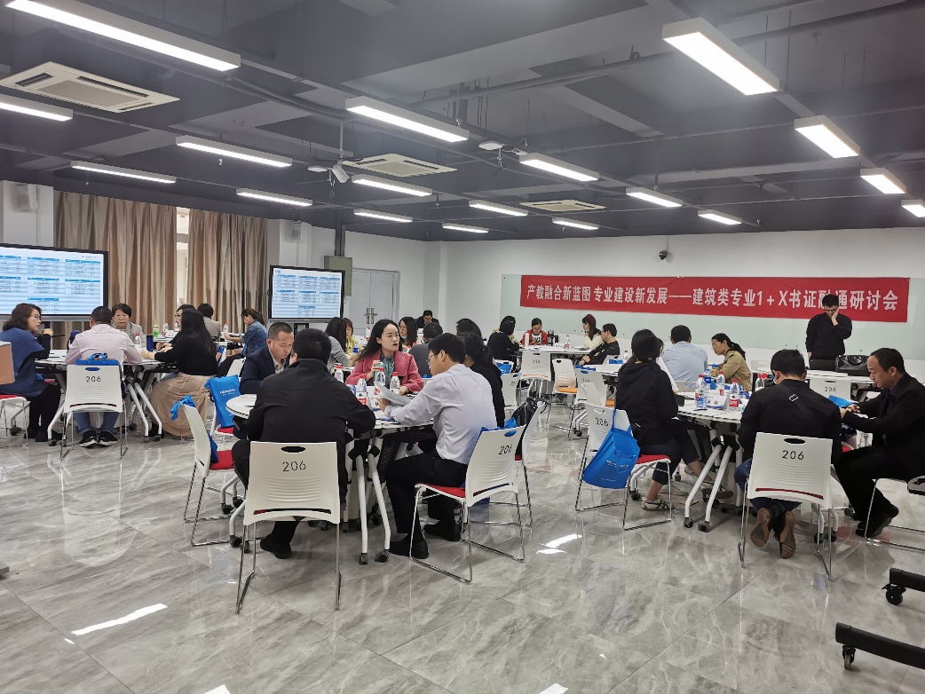 隨后,廣聯(lián)達(dá)股份有限公司數(shù)字高校事業(yè)部副總經(jīng)理謝軍就職教改革背景下1+X書(shū)證融通的內(nèi)涵及書(shū)證融通思路探索進(jìn)行了講述與分享。謝軍系統(tǒng)分析了高職相關(guān)教育政策、行業(yè)新型人才需求、1+X證書(shū)制度的現(xiàn)狀以及1+X書(shū)證融通的參考思路。參加研討會(huì)的各高校老師就目前院校面臨的1+X短期和長(zhǎng)期的問(wèn)題與難點(diǎn)以及解決方法以小組形式展開(kāi)了研討與分享。濰坊工程職業(yè)學(xué)院建筑工程教研室主任韓琪分享了濰坊工程職業(yè)學(xué)院的1+X實(shí)踐經(jīng)驗(yàn)。下午各位參會(huì)人員到我院的工法樓進(jìn)行了參觀(guān)學(xué)習(xí),并展開(kāi)了討論與交流。