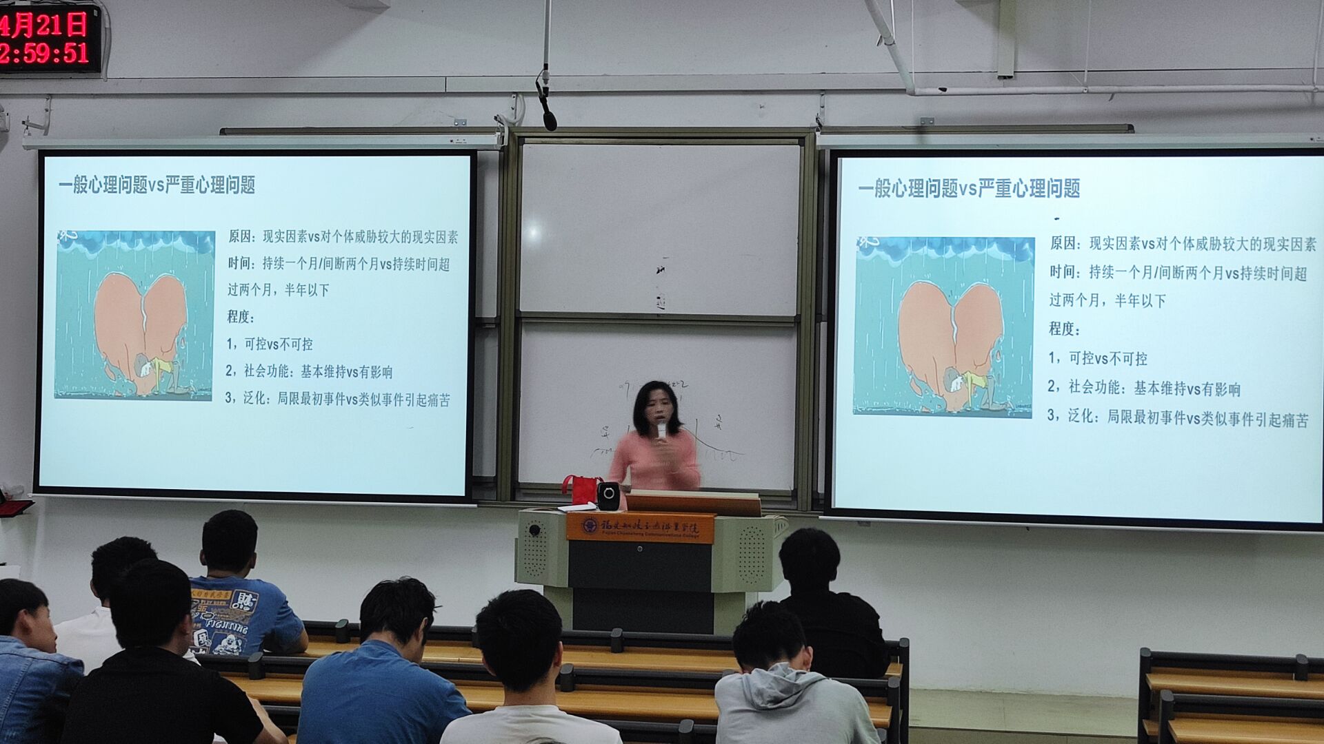 培訓(xùn)從問題“心理委員的職責(zé)”開始,緊接著,何老師通過案例引出了心理委員的角色定位:知心伙伴、心理觀察員”、活動(dòng)組織者、信息溝通的橋梁。作為知心朋友,要關(guān)注有“困難”的同學(xué),在能力范圍內(nèi)進(jìn)行初期輔導(dǎo)。作為心理觀察員,在初期心理危機(jī)預(yù)警中發(fā)揮著重大作用。心理委員的最大優(yōu)勢(shì)就是與同學(xué)聯(lián)系緊密,擁有許多正式的與非正式的溝通渠道。作為心理活動(dòng)的組織者,可以組織班級(jí)同學(xué)參與學(xué)院舉辦的各項(xiàng)心理活動(dòng),根據(jù)本班的情況有選擇性的開展一些特色活動(dòng)、傳播心理健康知識(shí),提升同學(xué)們的心理健康意識(shí)。作為信息傳遞員,不僅要為同學(xué)介紹學(xué)校、正規(guī)醫(yī)院等心理援助資源,還要及時(shí)將同學(xué)中可能導(dǎo)致危機(jī)事件的信息及時(shí)向教師反饋。