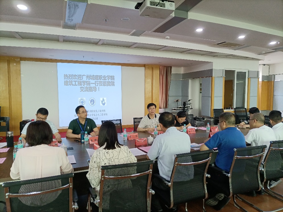 5月13日上午,廣州城建職業(yè)學(xué)院建筑工程學(xué)院院長(zhǎng)助理陳勇、建筑設(shè)計(jì)教研室主任劉圓圓、建筑裝飾工程技術(shù)教研室主任林怡標(biāo)、風(fēng)景園林專業(yè)教研室主任周彬清、建筑設(shè)計(jì)專業(yè)骨干教師矯蘇寧一行蒞臨我院考察交流,土木工程學(xué)院副院長(zhǎng)卓維松、朱明栓,建筑工程技術(shù)教研室主任高巧玲、建筑裝飾工程技術(shù)教研室主任林蕾、實(shí)訓(xùn)中心主任徐行軍,以及骨干教師謝美鳳參加了此次交流學(xué)習(xí)會(huì)。