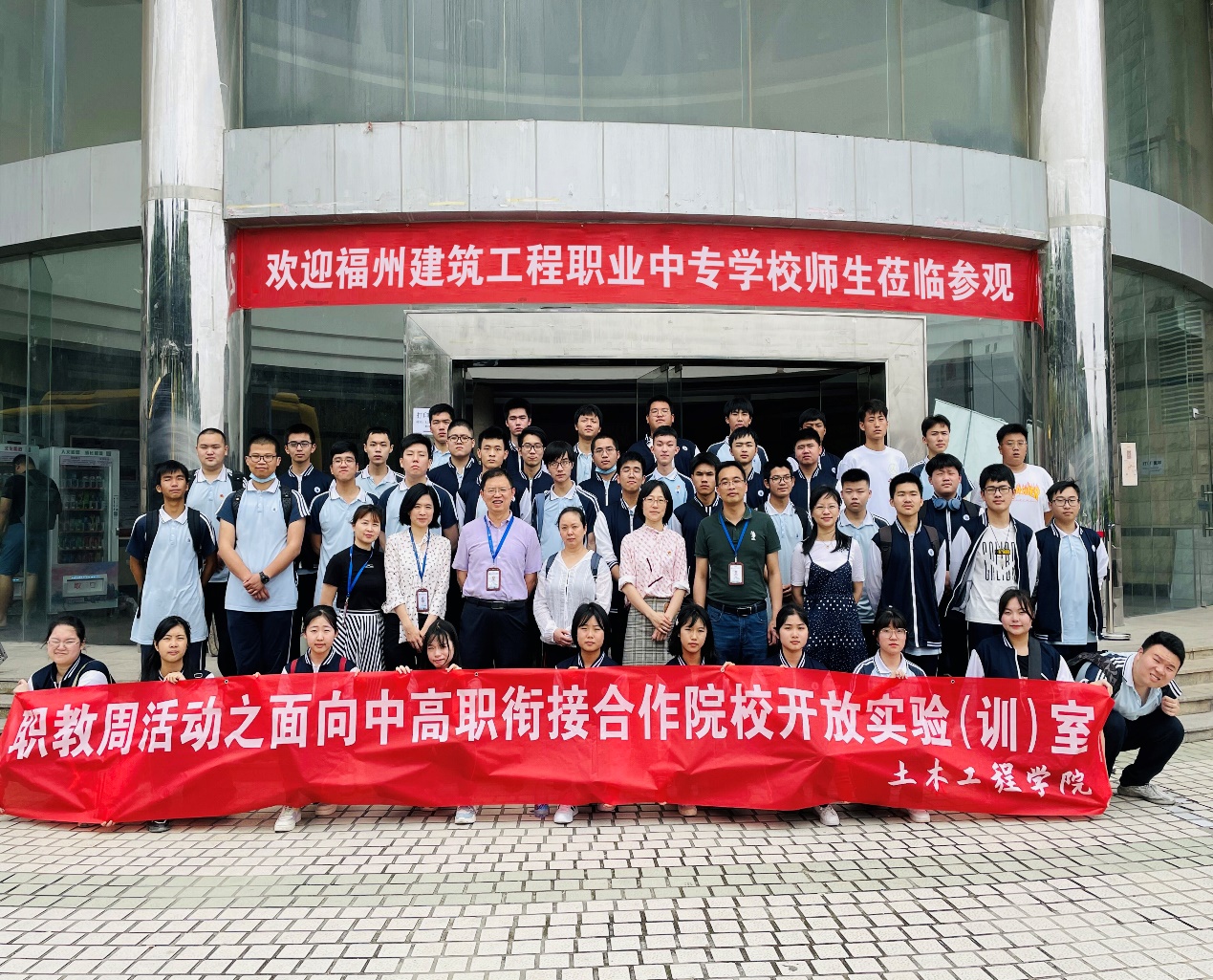 2021年5月22日-28日,福建船政交通職業(yè)學院開展職業(yè)教育活動周,土木工程學院認真貫徹落實學校工作部署,5月23日上午,設立校園開放日,面向中高職銜接合作院校開放實驗(訓)室,邀請福州建筑工程職業(yè)中專學校師生來校參觀。