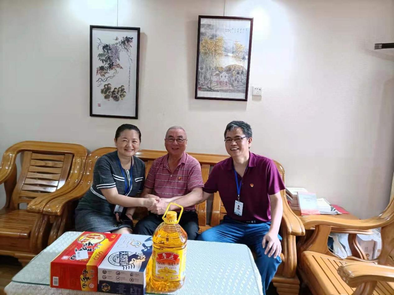 在“七一”到來之際,為慶祝中國共產(chǎn)黨成立100周年,把黨的關(guān)懷和溫暖送到老黨員老教師的心坎上,6月28日上午,土木工程學(xué)院黨總支書記高杰同志、副書記任穎卿同志看望慰問學(xué)院老黨員退休教師鄭益民。