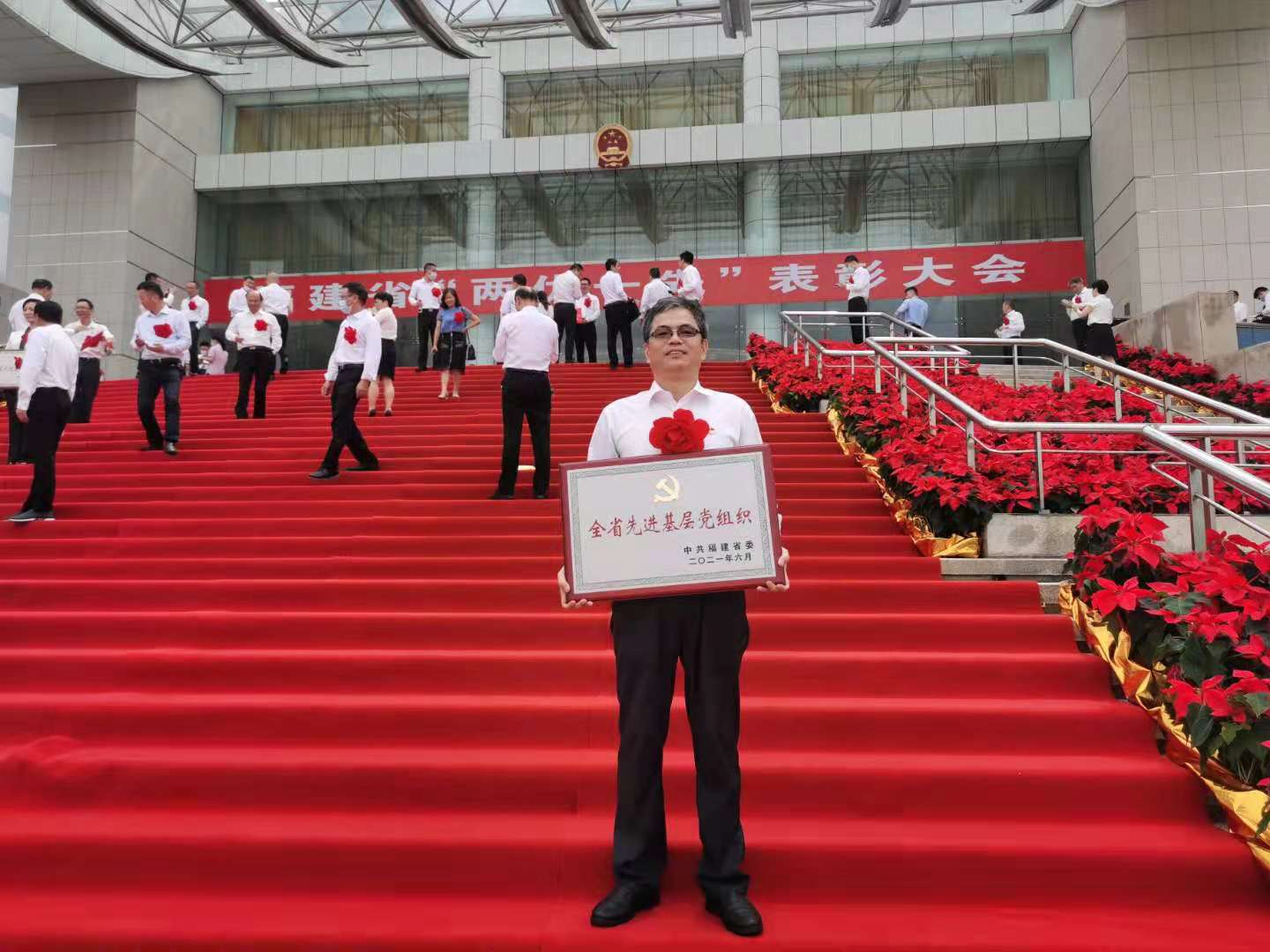 6月29日上午,福建省“兩優(yōu)一先”表彰大會在福建會堂隆重召開,土木工程學院黨總支被授予“全省先進基層黨組織”稱號,黨總支書記高杰同志參加表彰大會并領取獎牌。