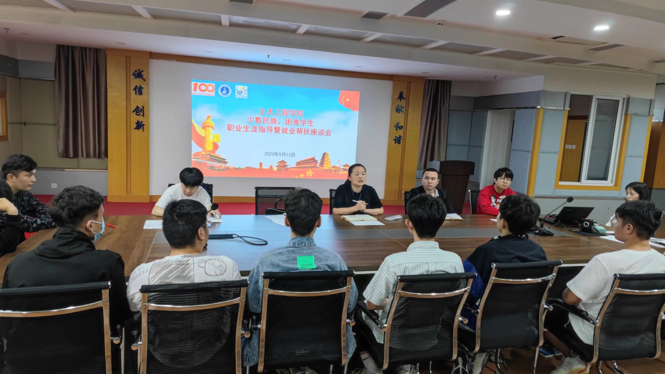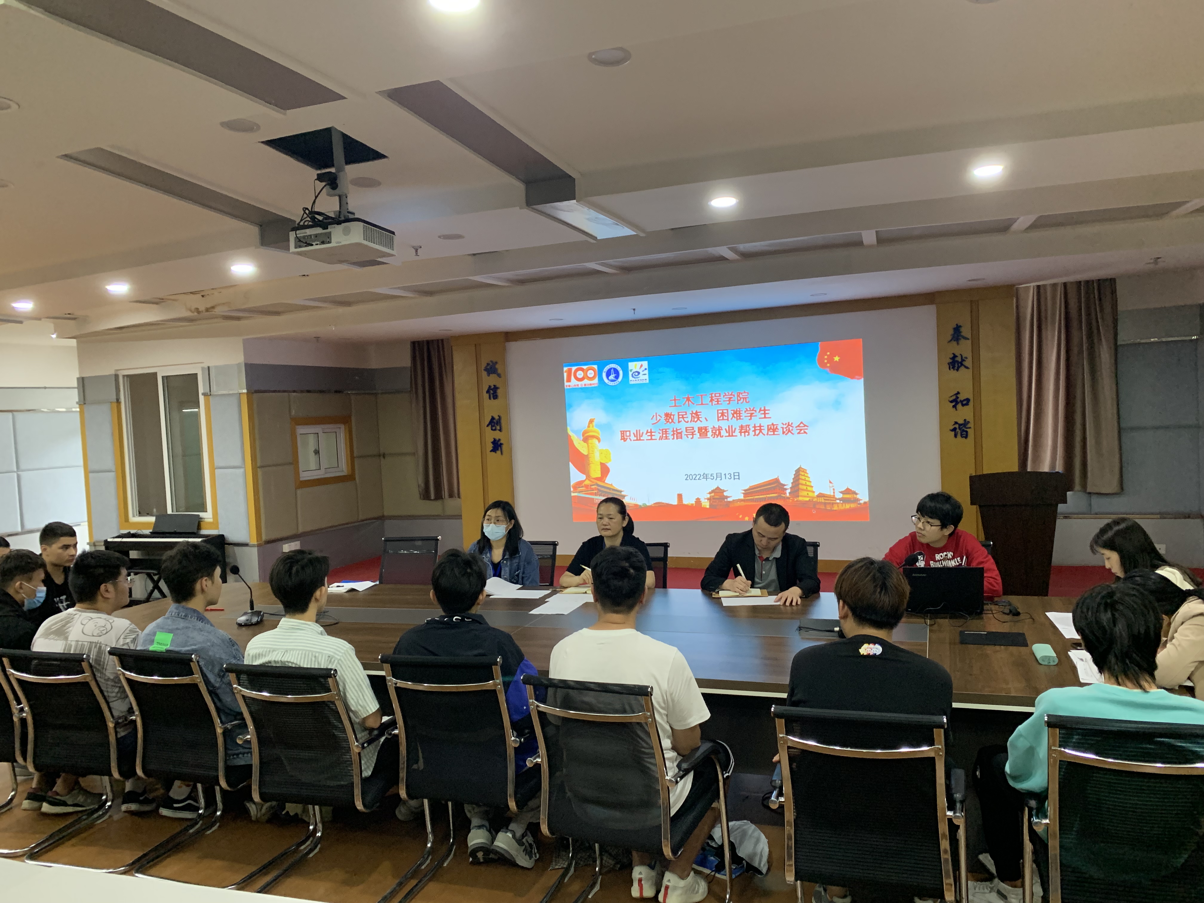 5月13日,土木工程學院在科技樓1007召開少數(shù)民族、困難學生職業(yè)生涯指導暨就業(yè)幫扶座談會。黨總支副書記任穎卿、心揚工作室何維康老師、輔導員及少數(shù)民族、困難學生代表參加此次座談會。